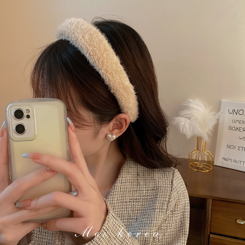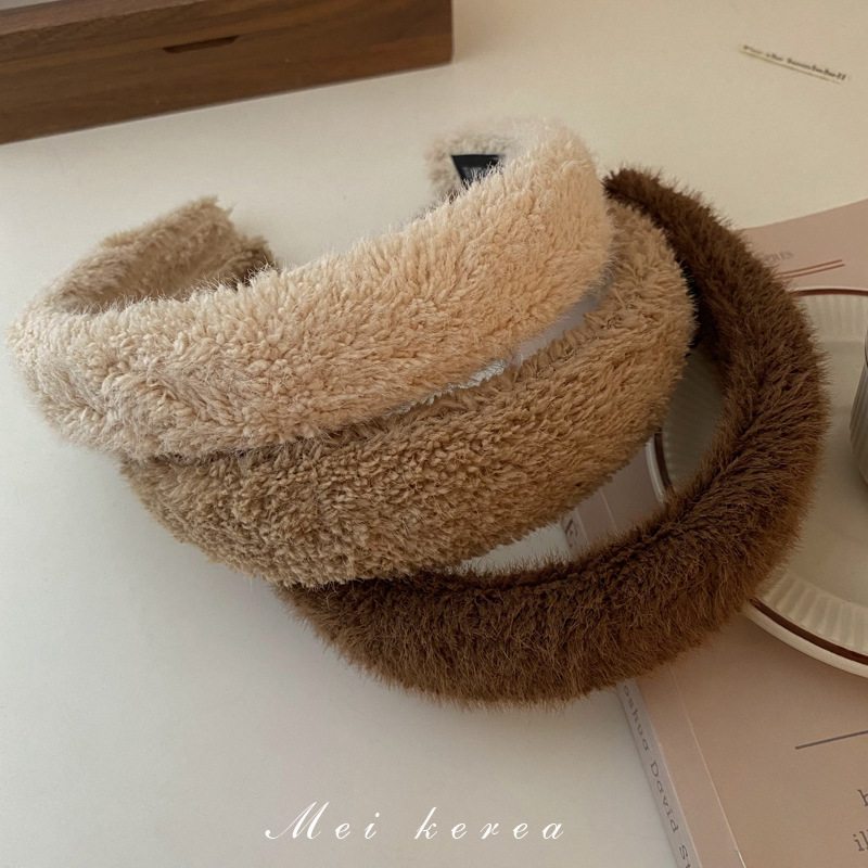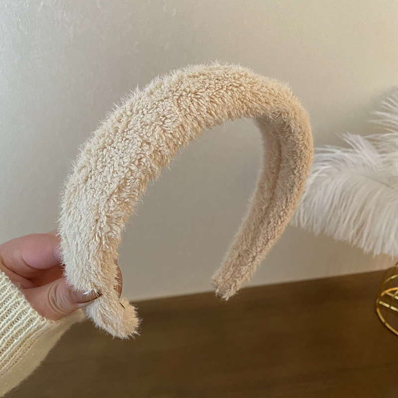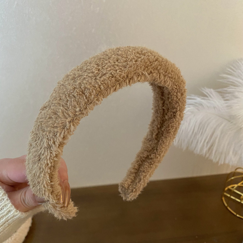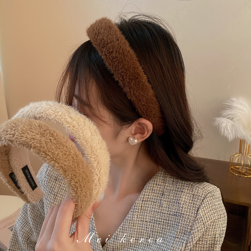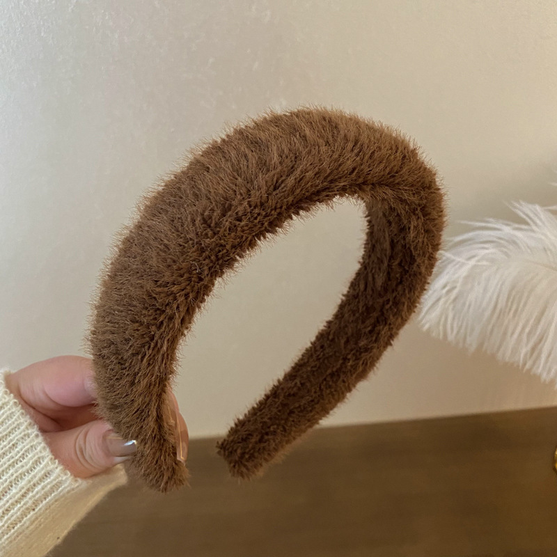 韩国奶茶色系毛绒几何发箍秋冬新款高颅顶压发头箍时尚通勤发饰女