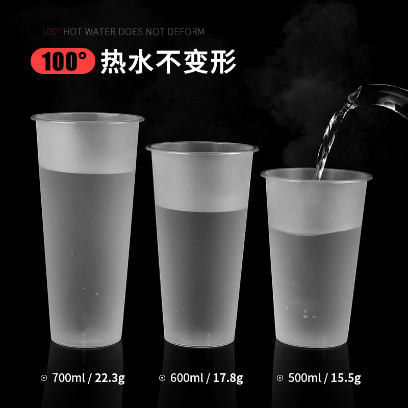 一次性奶茶杯批发90口径PP加厚500ml磨砂杯700ml注塑杯奶茶杯子