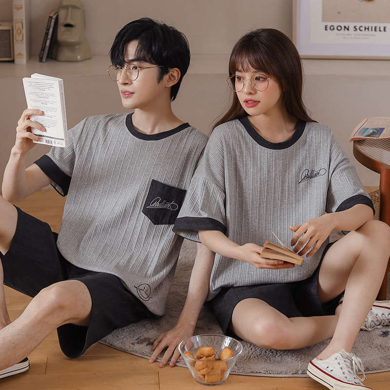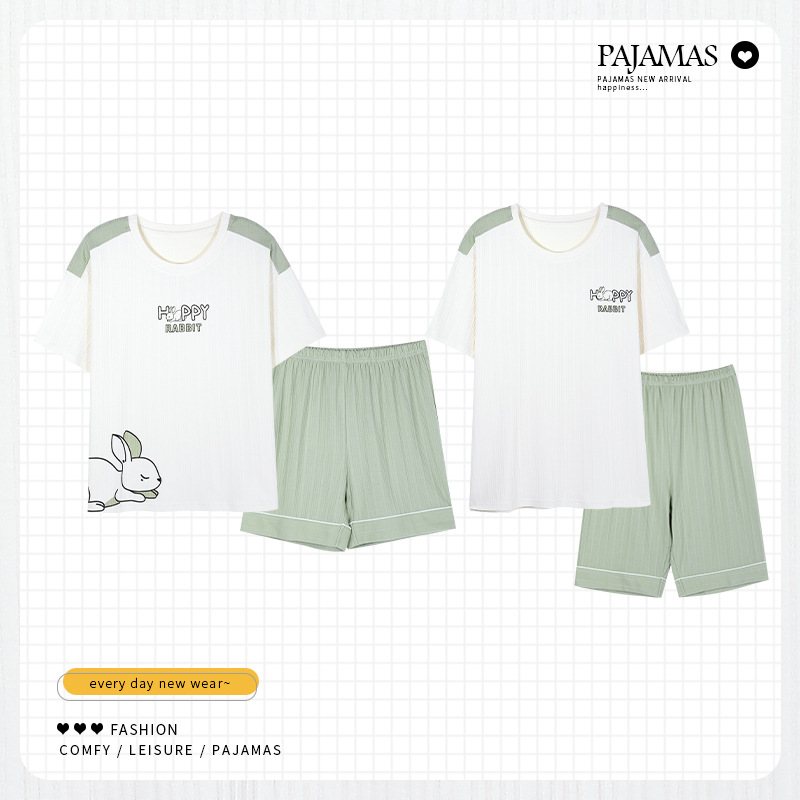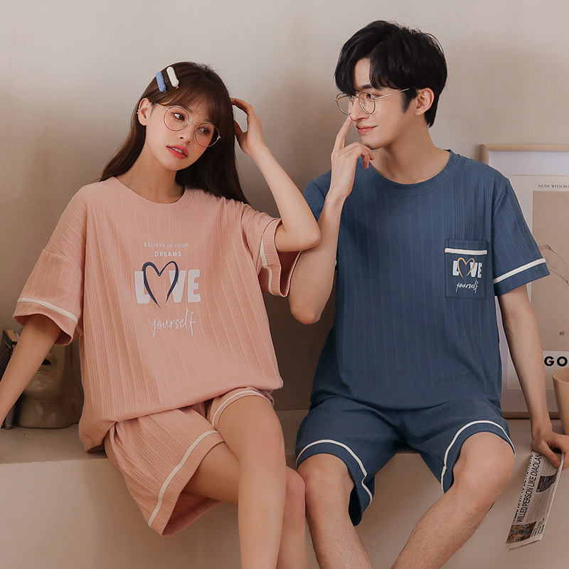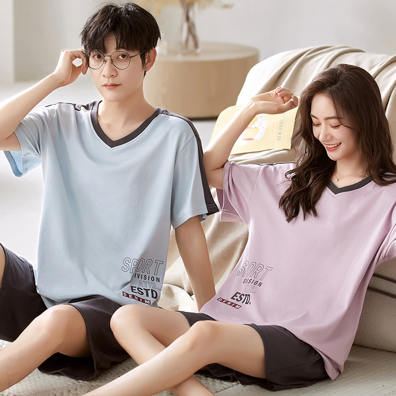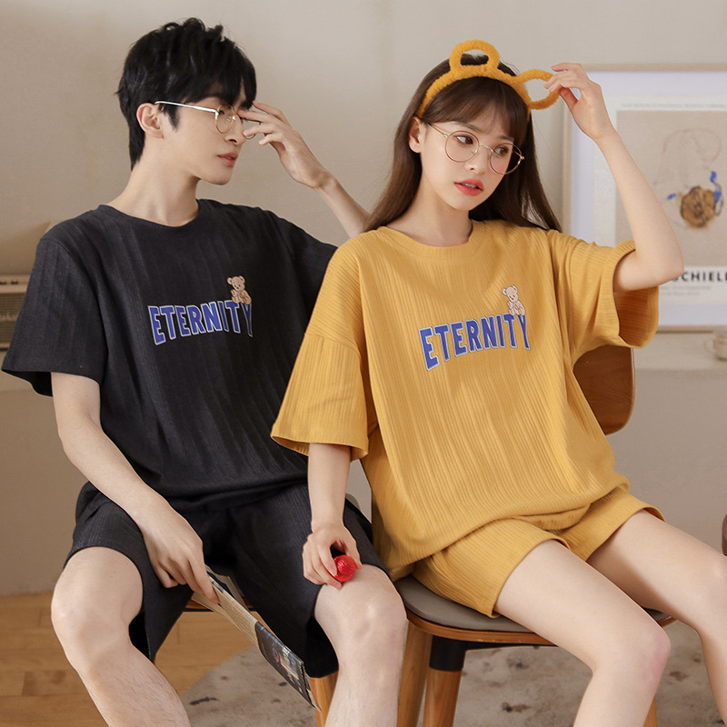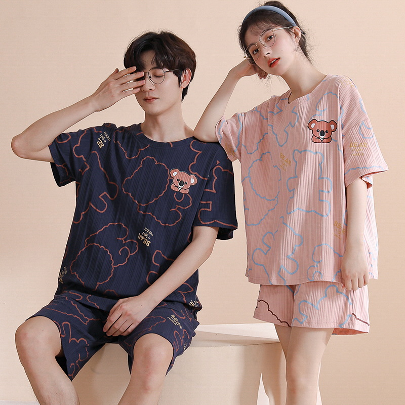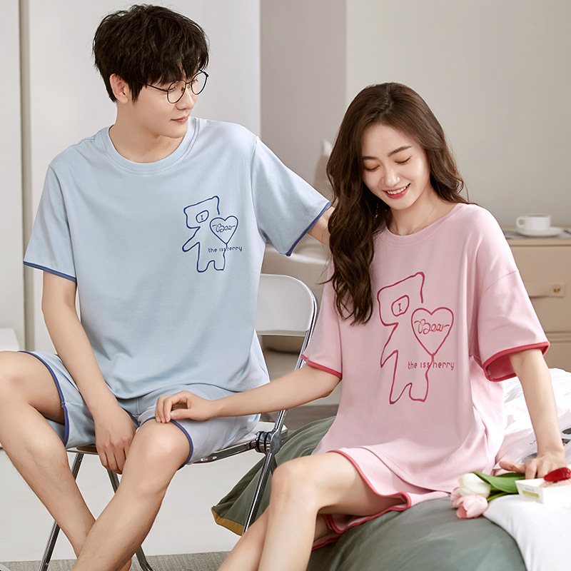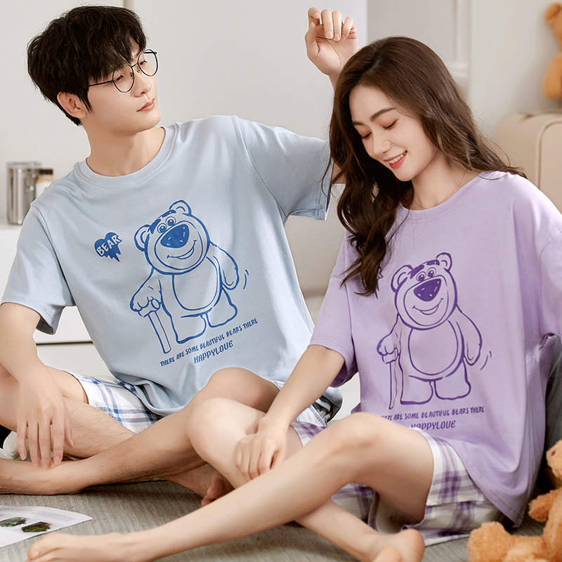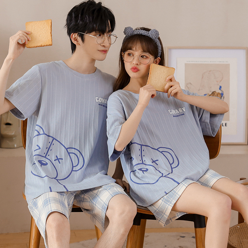 新款情侣短袖短裤睡衣女夏季薄款精梳棉男家居服套装宽松休闲卡通