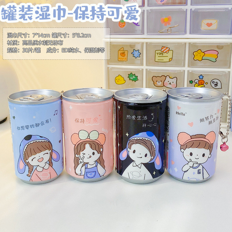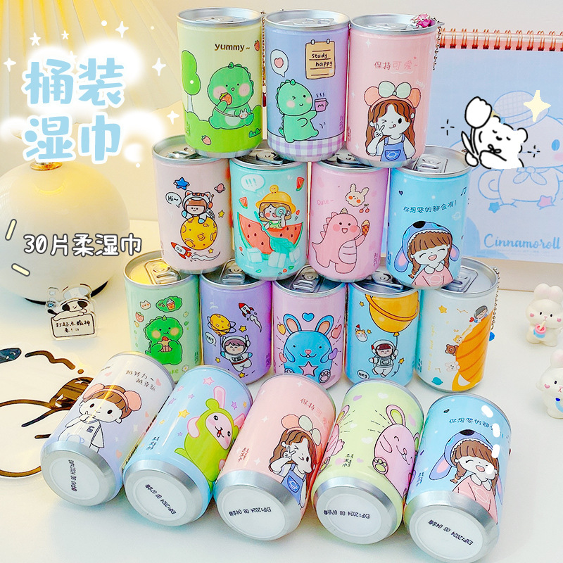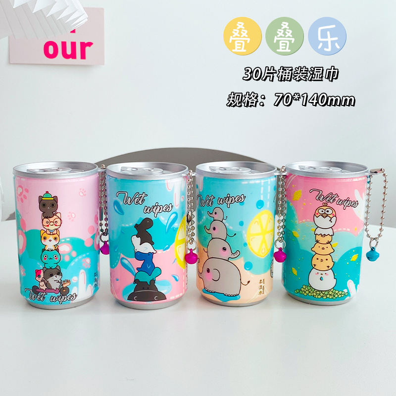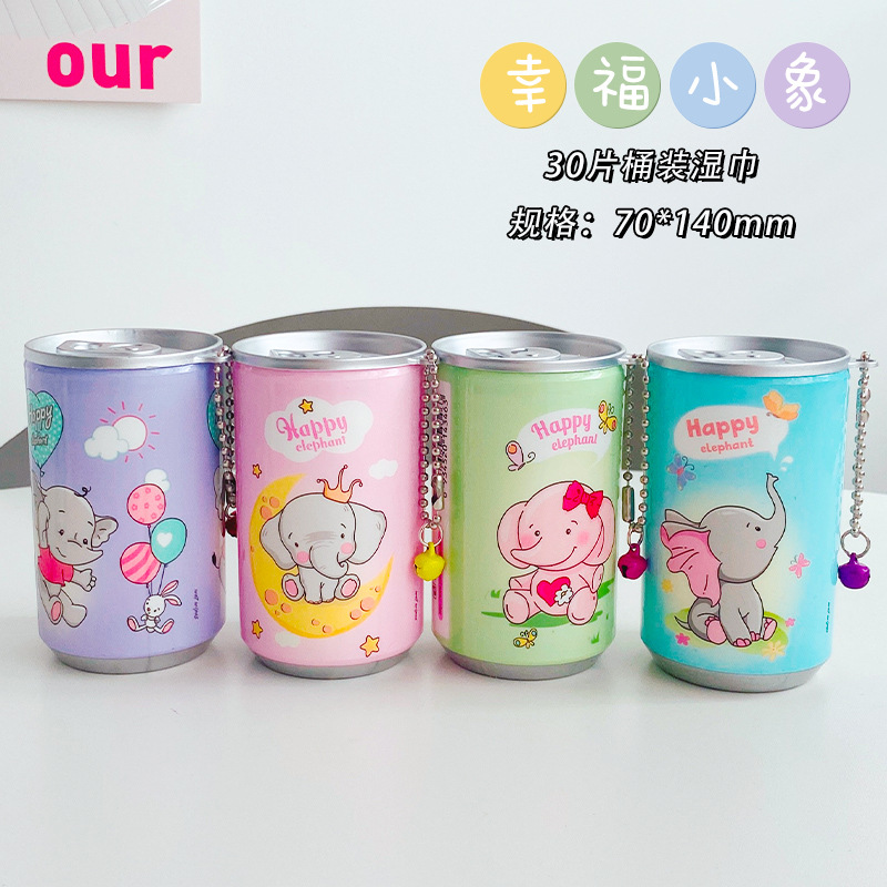 创意30片桶装湿巾罐装便携厨房车用清洁旅行卸妆婴儿湿纸巾批发