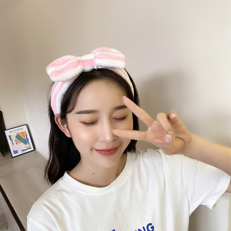 韩国猫耳朵束发带兔耳朵鹿角洗脸发带发箍毛绒蝴蝶结针织发带头箍