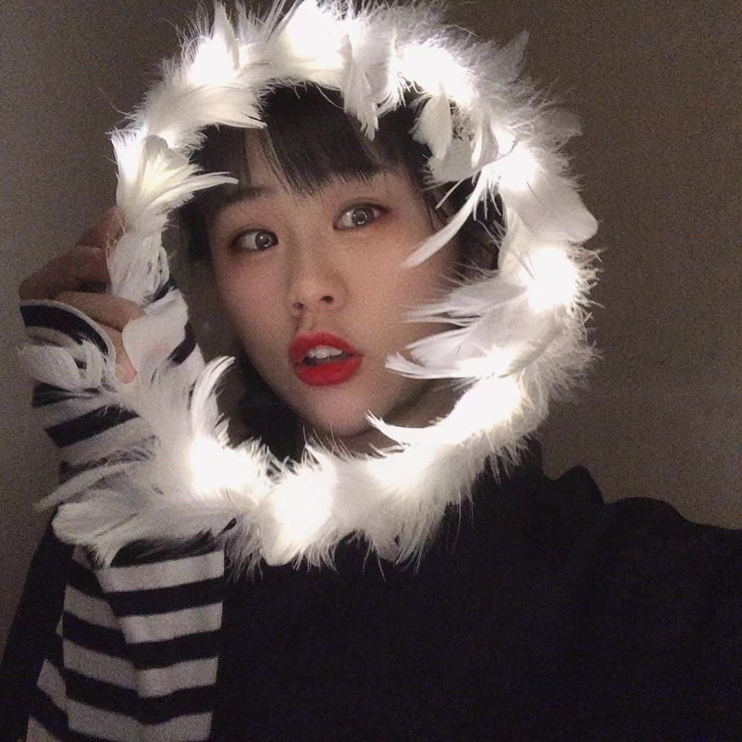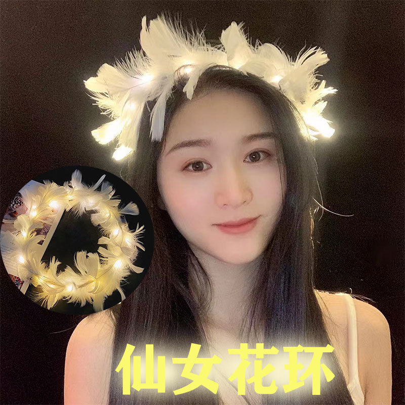 新款仙女发光羽毛花环兔耳朵网红夜市地推闪光头饰地推扫码礼品