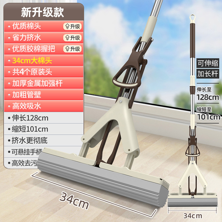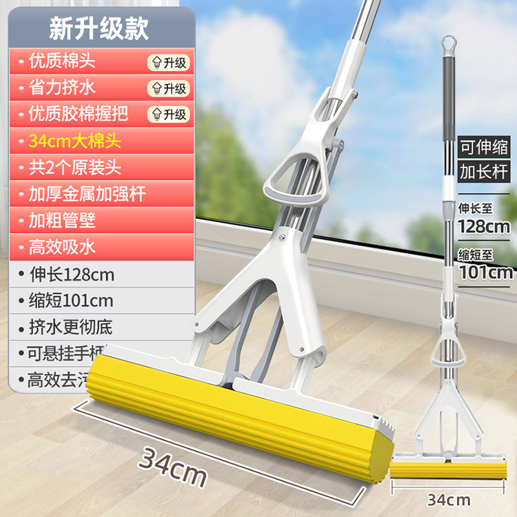 海绵拖把免手洗拖把胶棉吸水拖把胶棉拖把懒人挤水对折吸水拖把