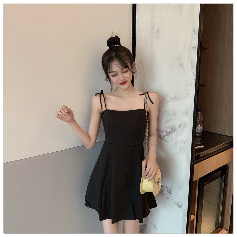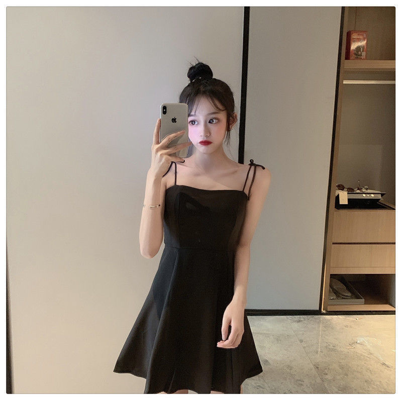 2022新款吊带女夏季小个子收腰修身韩版气质学生黑色短裙子