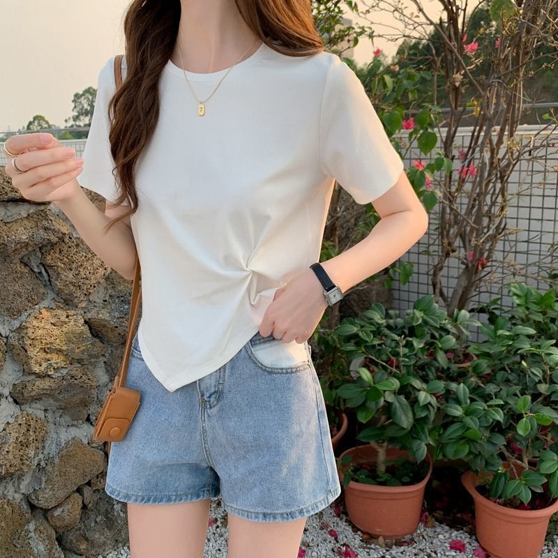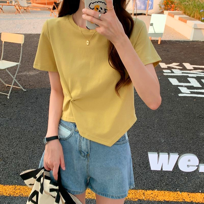 不规则短袖t恤女2022年新款夏季心机设计感小众半袖高腰短
