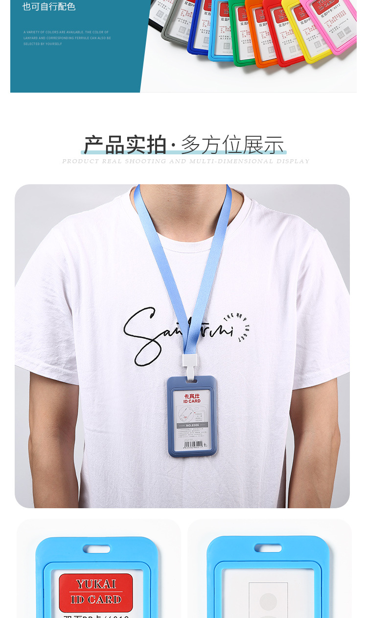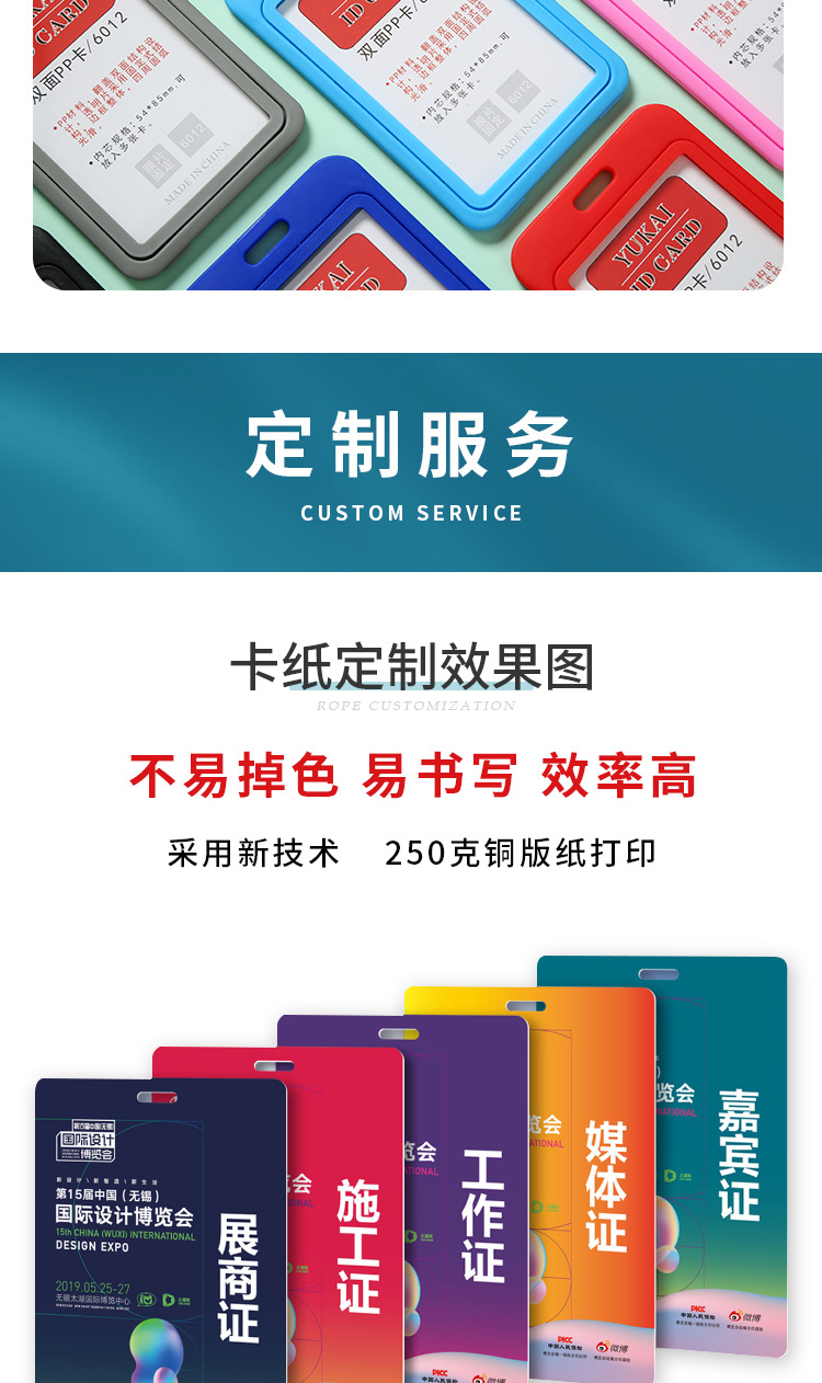 双面透明膜片固定工作牌会议证件卡套翻盖工作证展销证挂绳胸卡牌