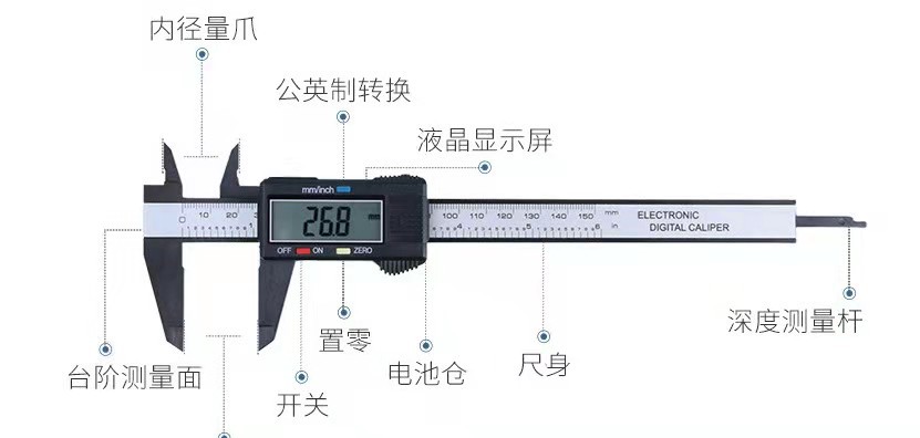 电子数显游标卡尺0-150mm碳纤维数字大屏 塑料数显卡尺精度0.1MM