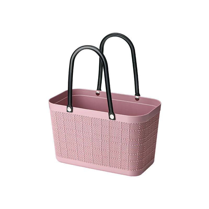 新款伴手礼篮子女士手提包购物篮塑料洗衣麻布纹收纳篮时尚买菜篮