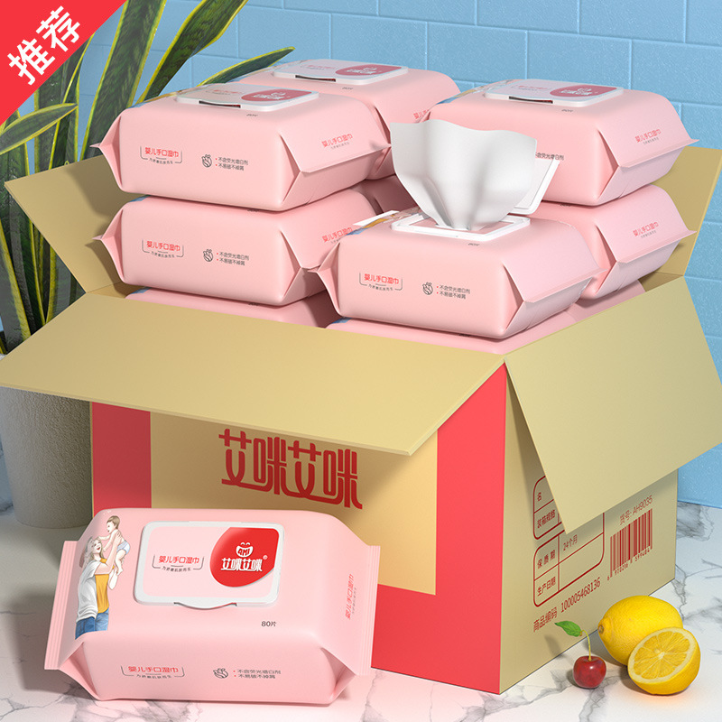 儿童湿巾婴儿宝宝手口湿纸巾消毒80抽大包装不连抽湿巾批发代发