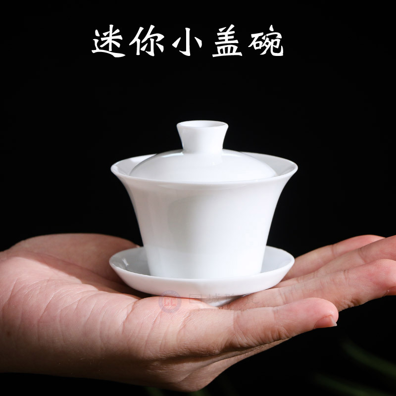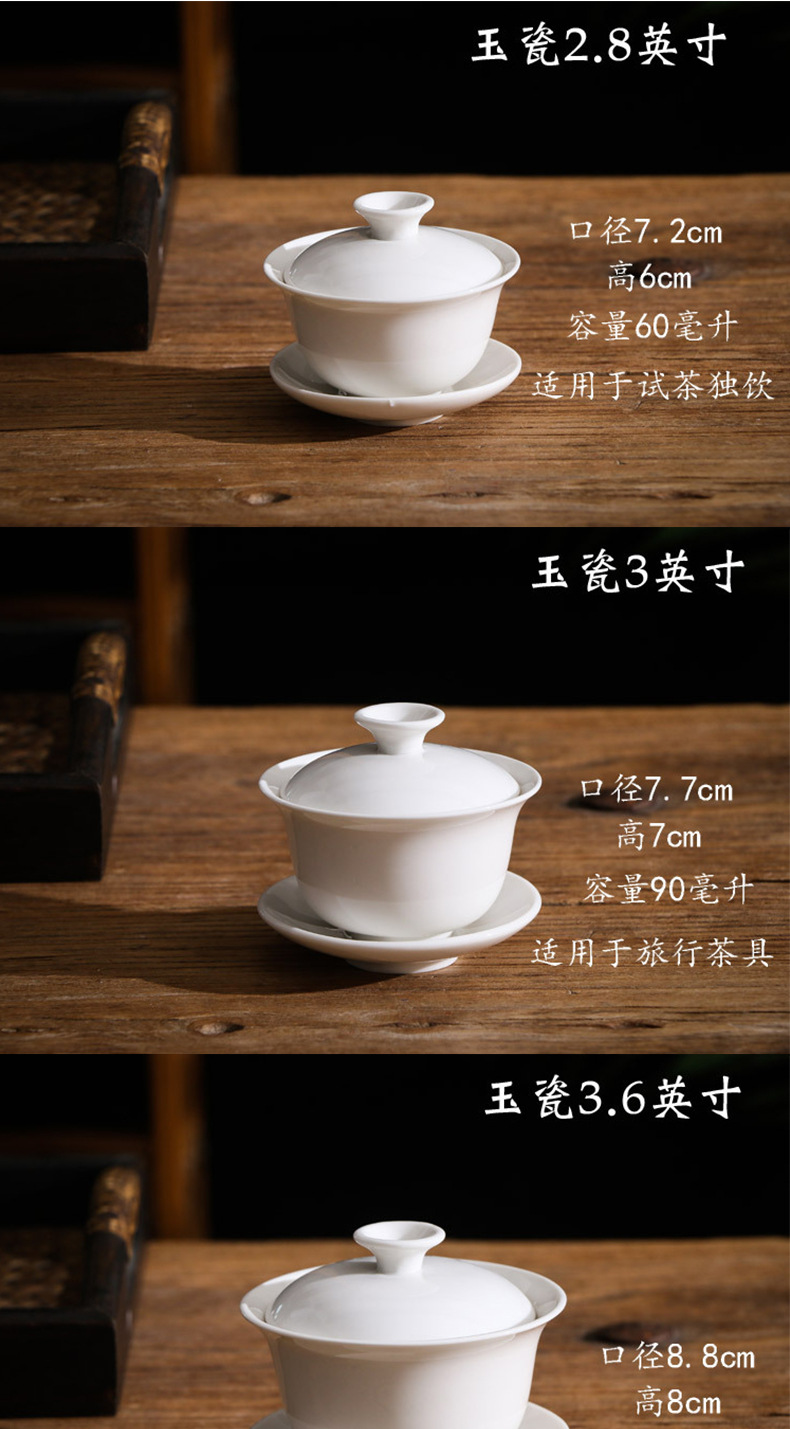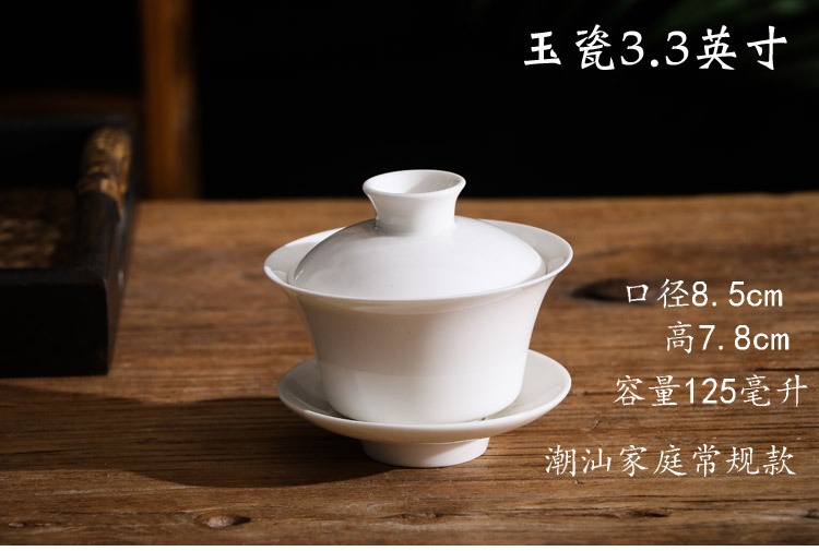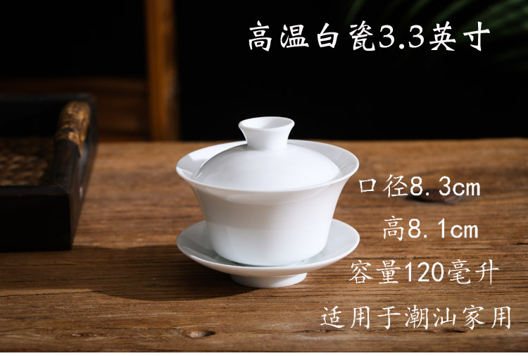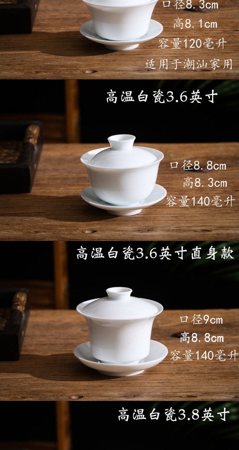 纯白陶瓷泡茶碗三件套三才小茶碗 潮汕小号大号可印logo白瓷盖碗
