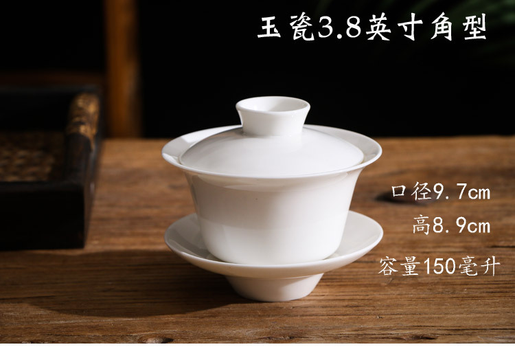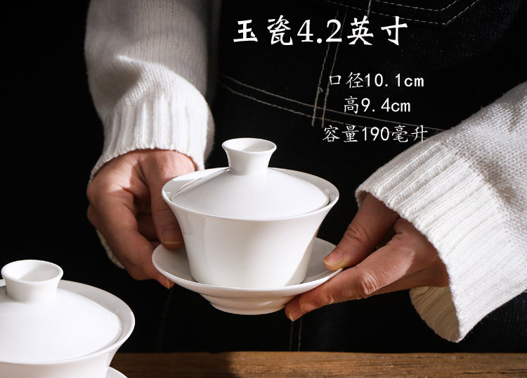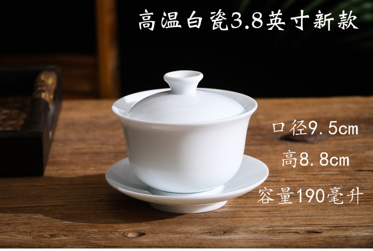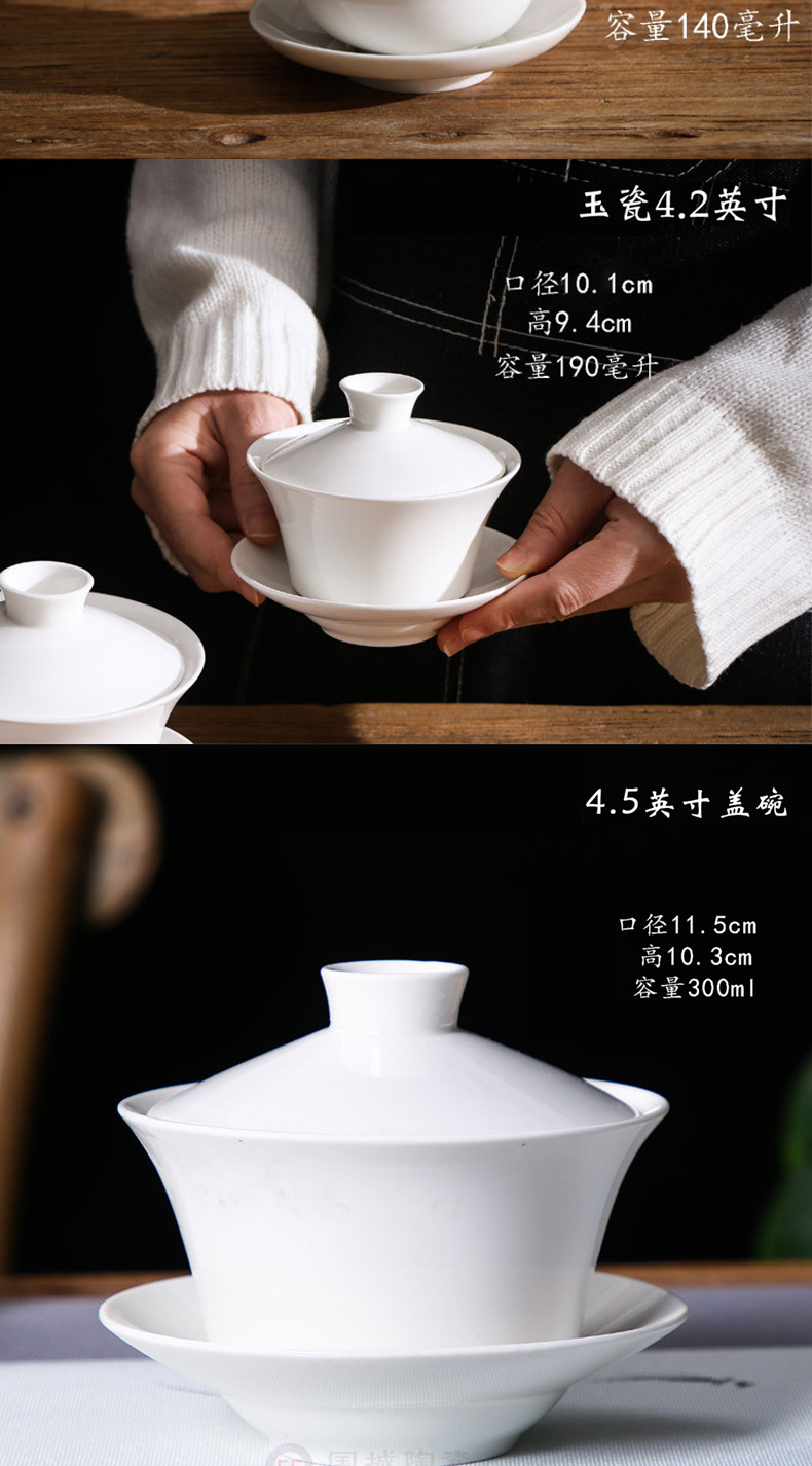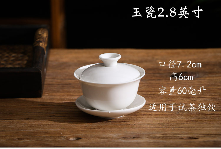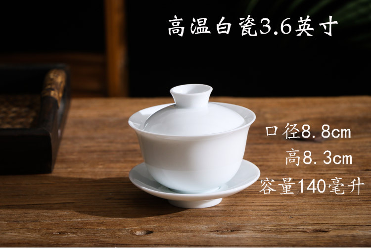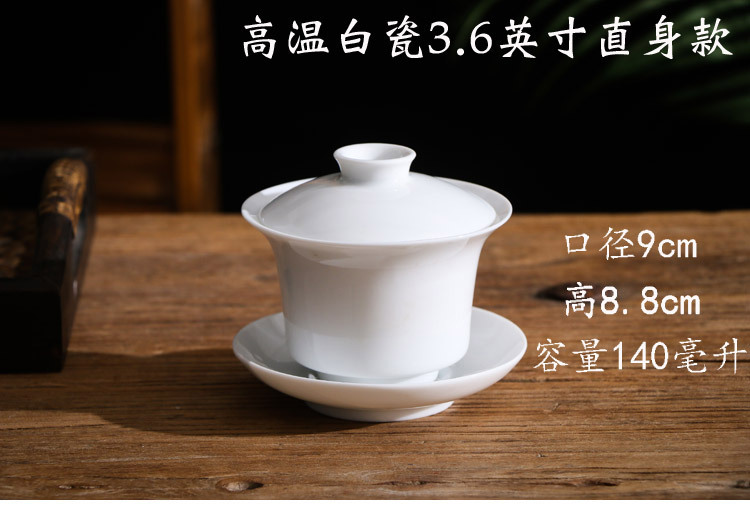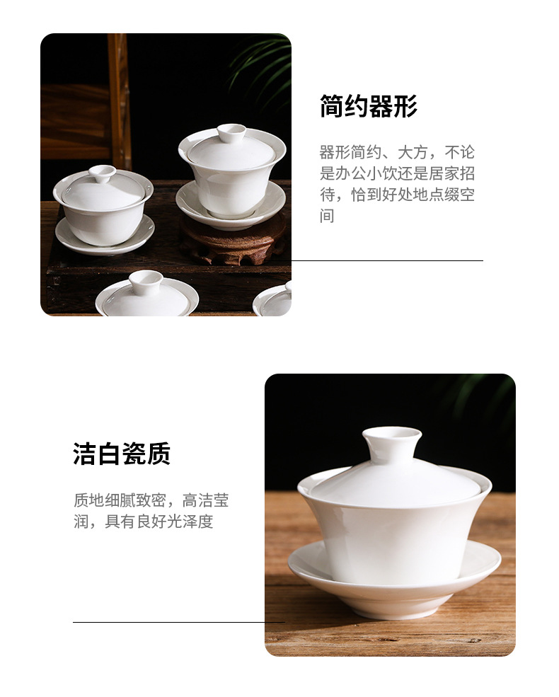 纯白陶瓷泡茶碗三件套三才小茶碗 潮汕小号大号可印logo白瓷盖碗