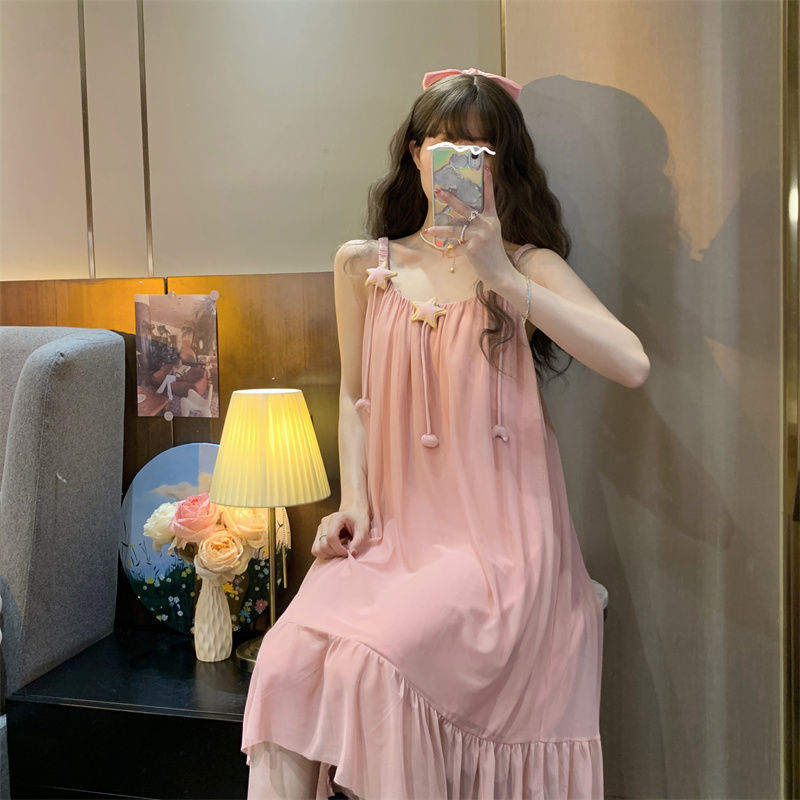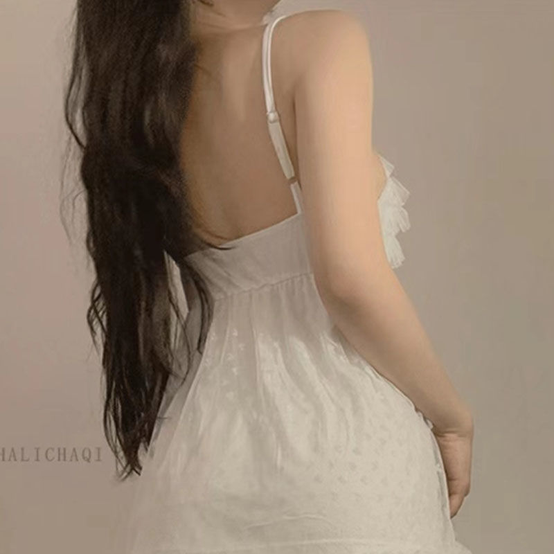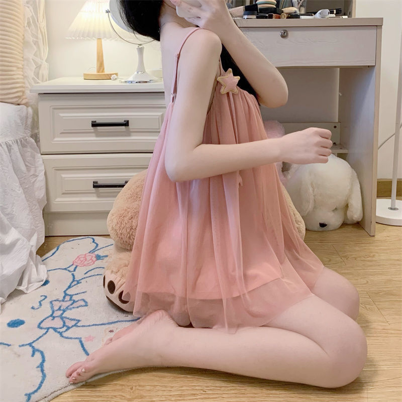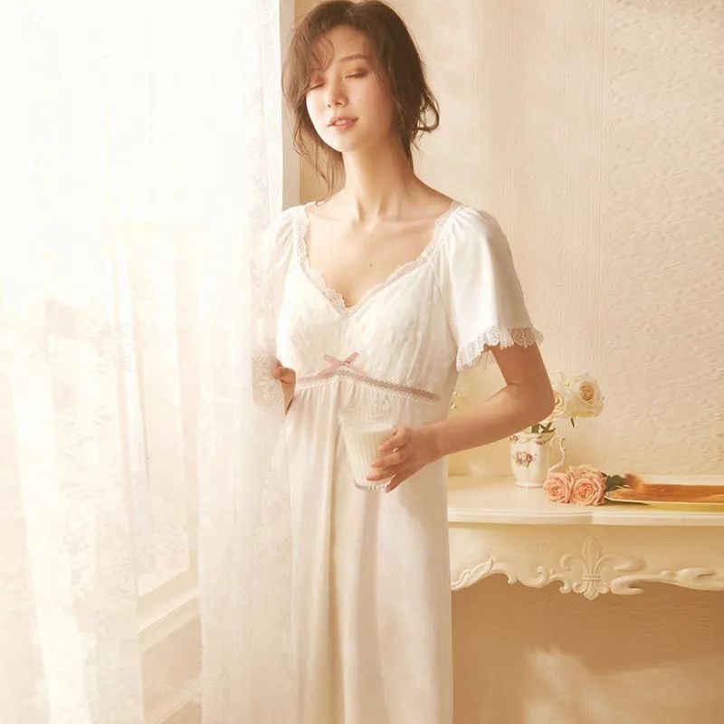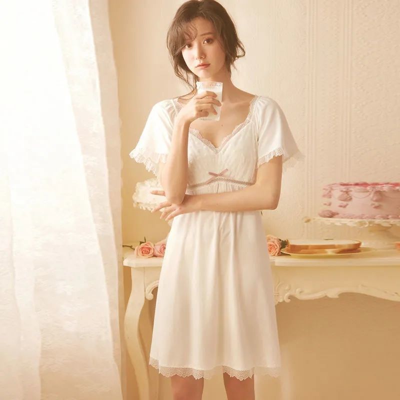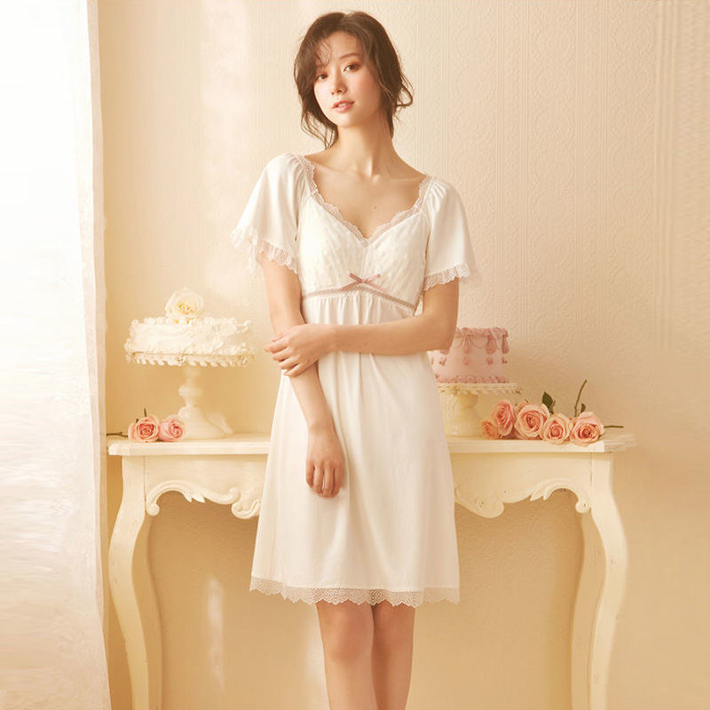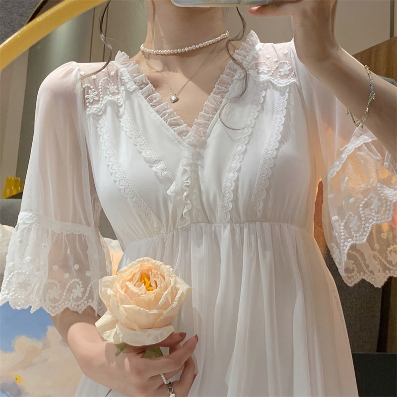 带胸垫睡衣女夏季新款宫廷公主风纯欲蕾丝网纱睡裙甜美外穿两件套