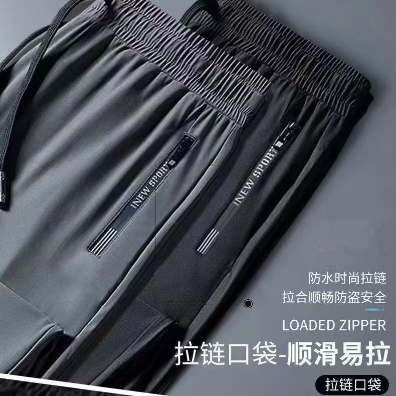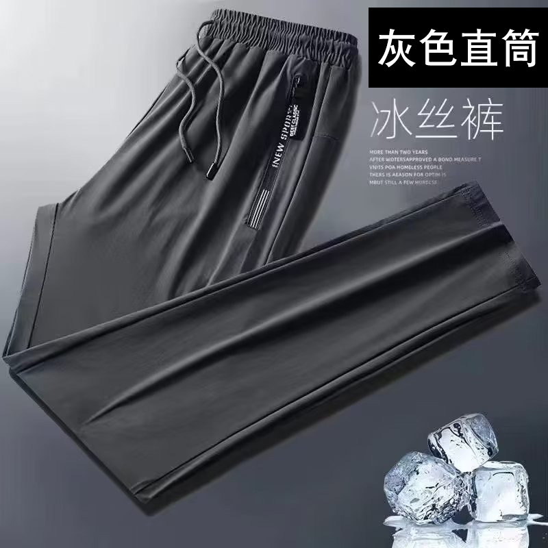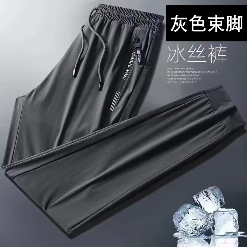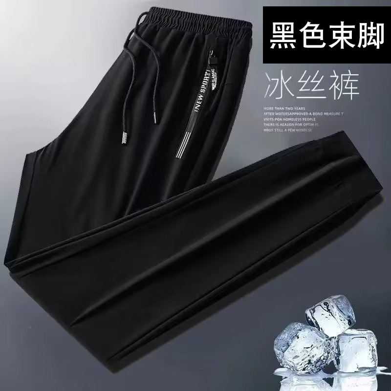 夏季薄款冰丝裤男士运动裤休闲束脚裤空调大码裤子工地便宜长裤子