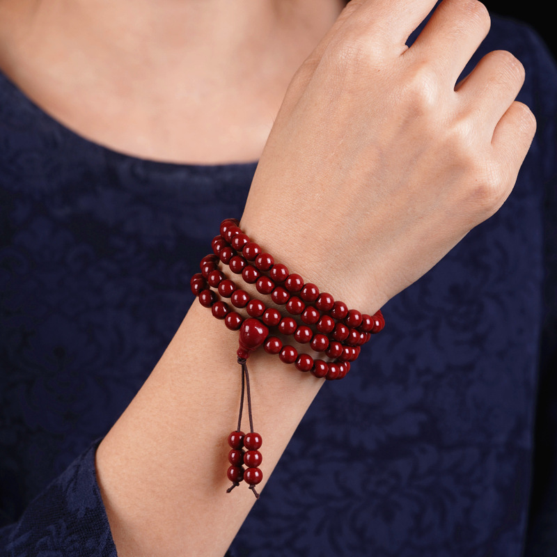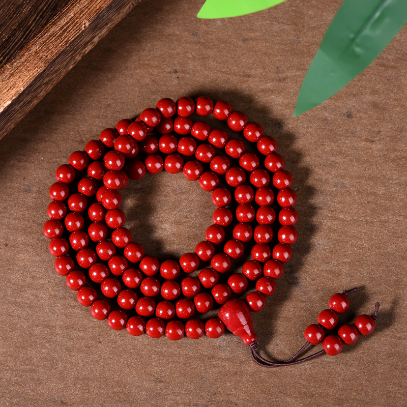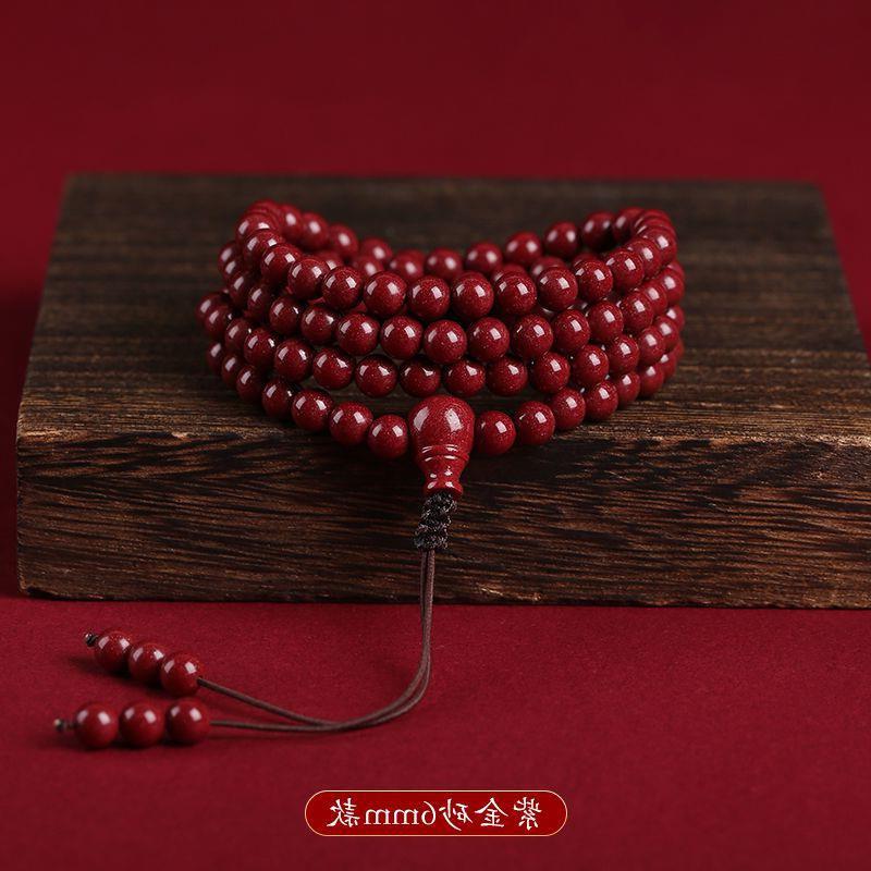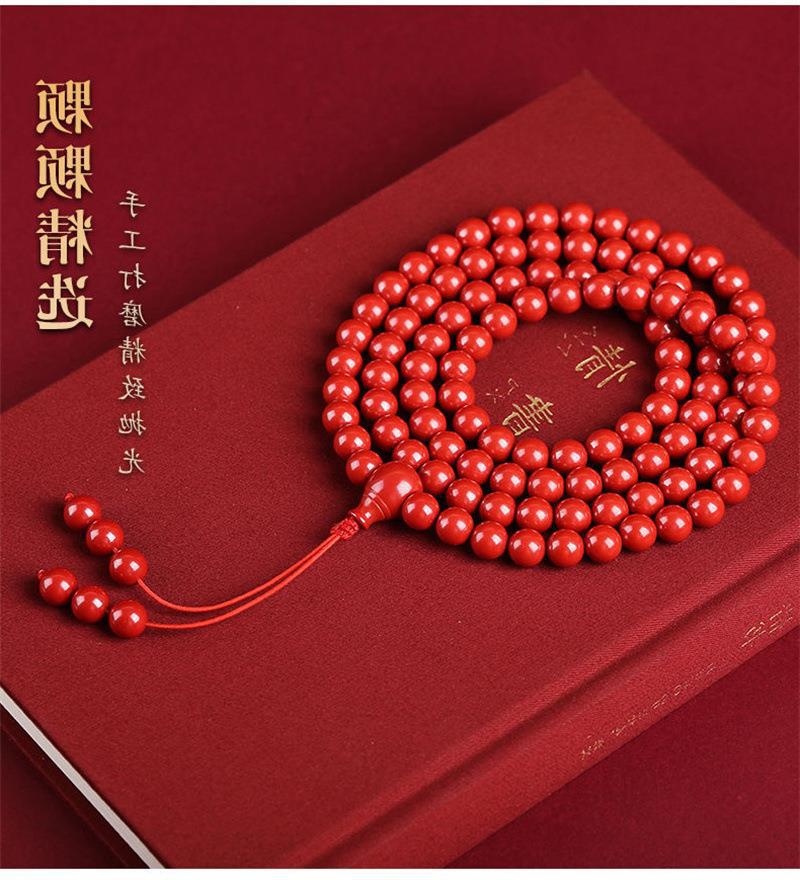 紫金砂朱砂108颗佛珠手串男女款多圈念珠本命年福利多圈佛珠手串