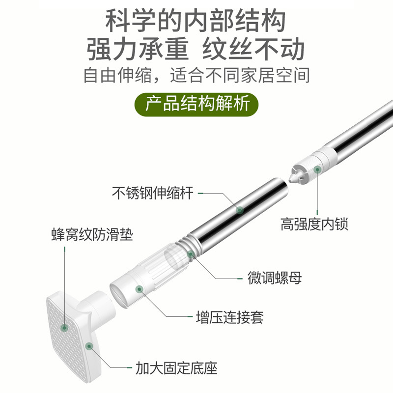 伸缩杆免打孔安装衣橱柜挂衣杆可调节浴帘杆宿舍晾衣杆阳台窗帘杆