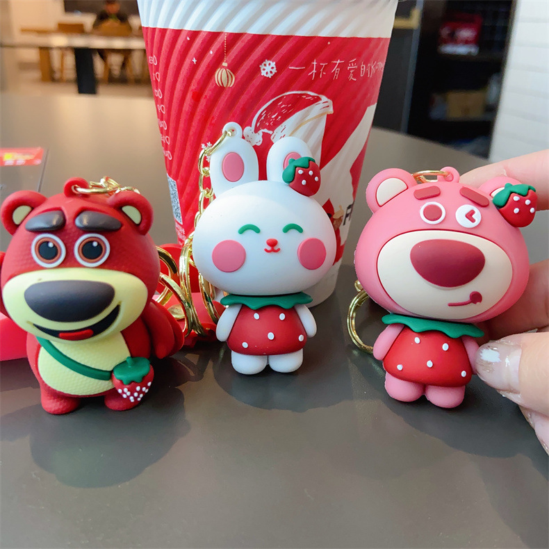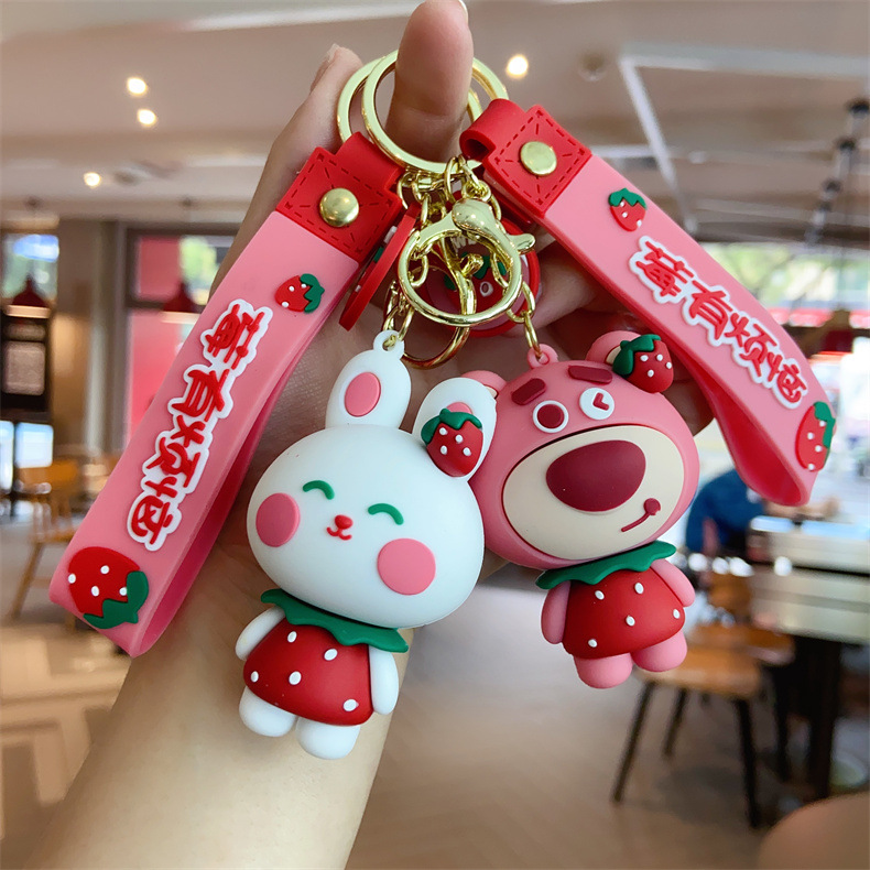 创意草莓小兔小熊动物钥匙扣挂件女可爱卡通汽车钥匙链小礼品批发