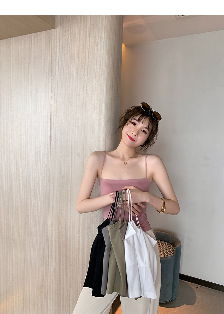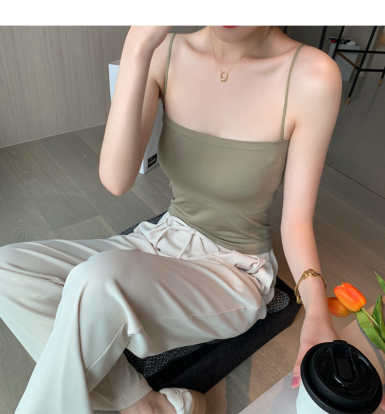1806纯色美背抹胸吊带胸垫背心女外穿内搭固定杯一体式防走光裹胸