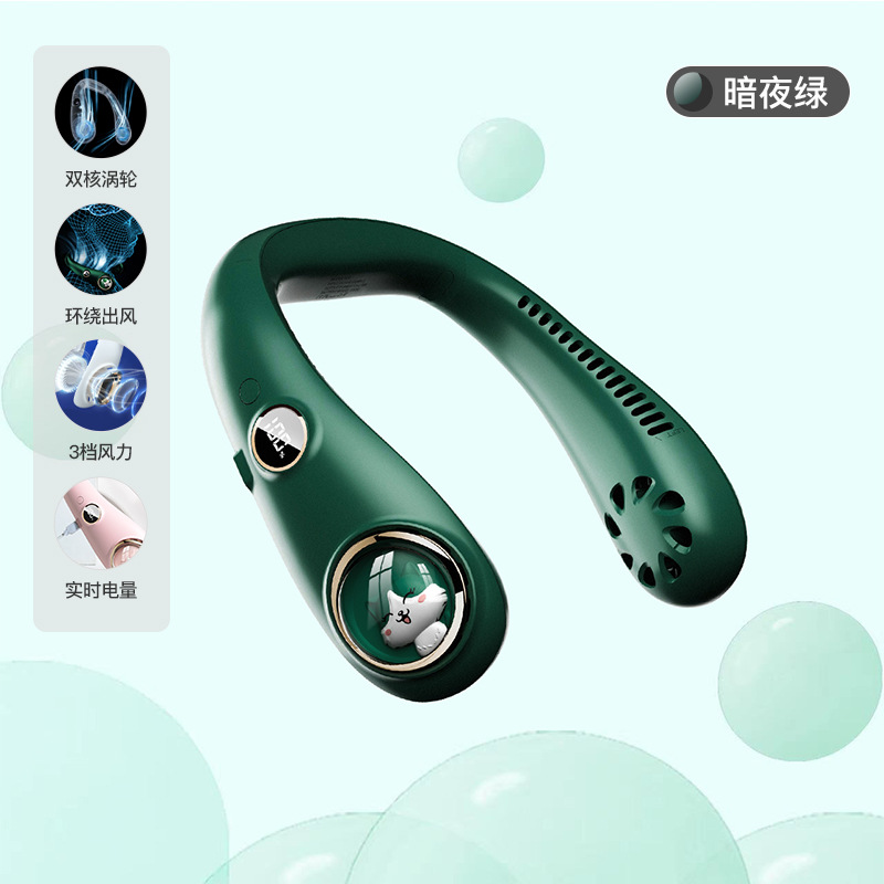 跨境新款挂脖风扇静音户外运动USB小风扇 便携式无叶挂脖小电风扇