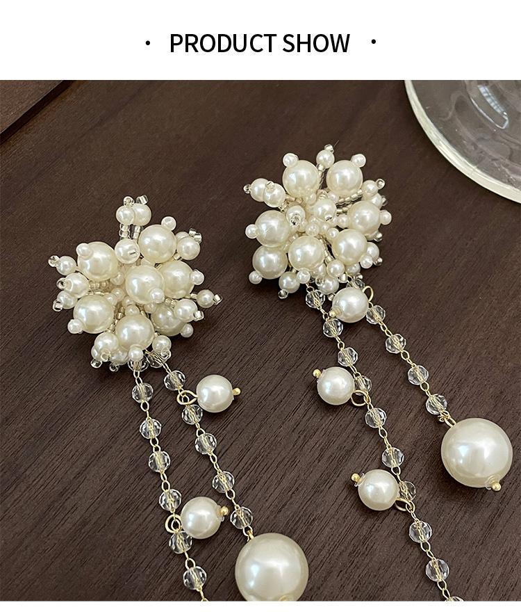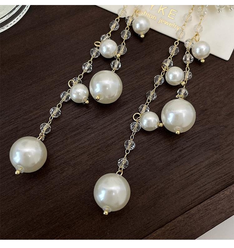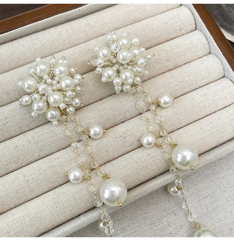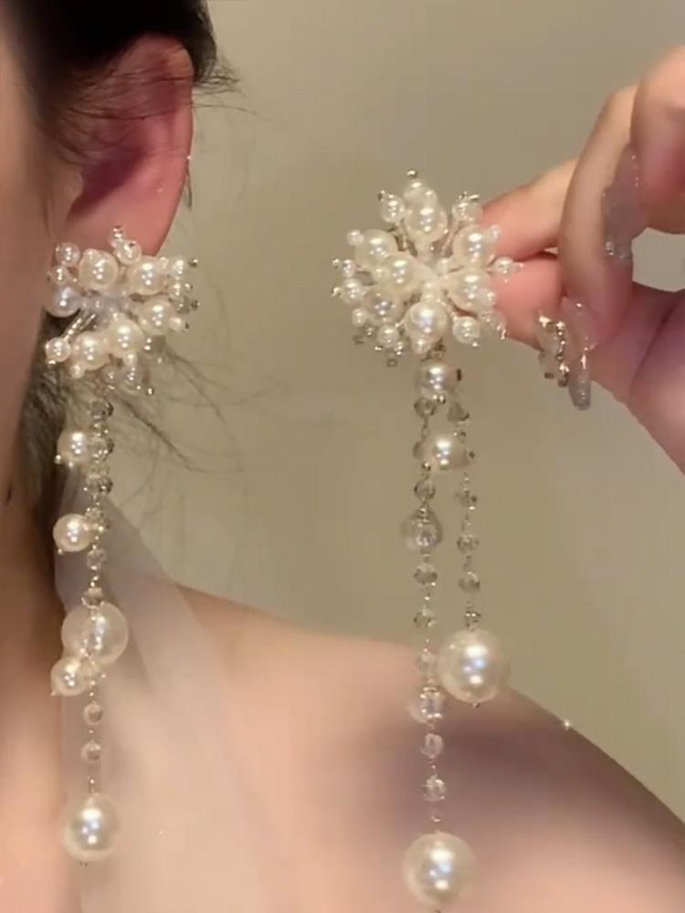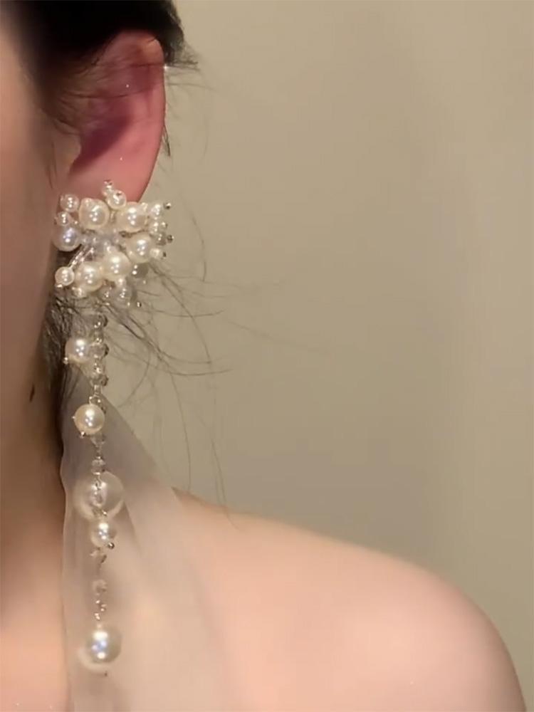 复古珍珠长款流苏耳环夸张大耳坠感气质优雅新娘结婚宴会耳饰