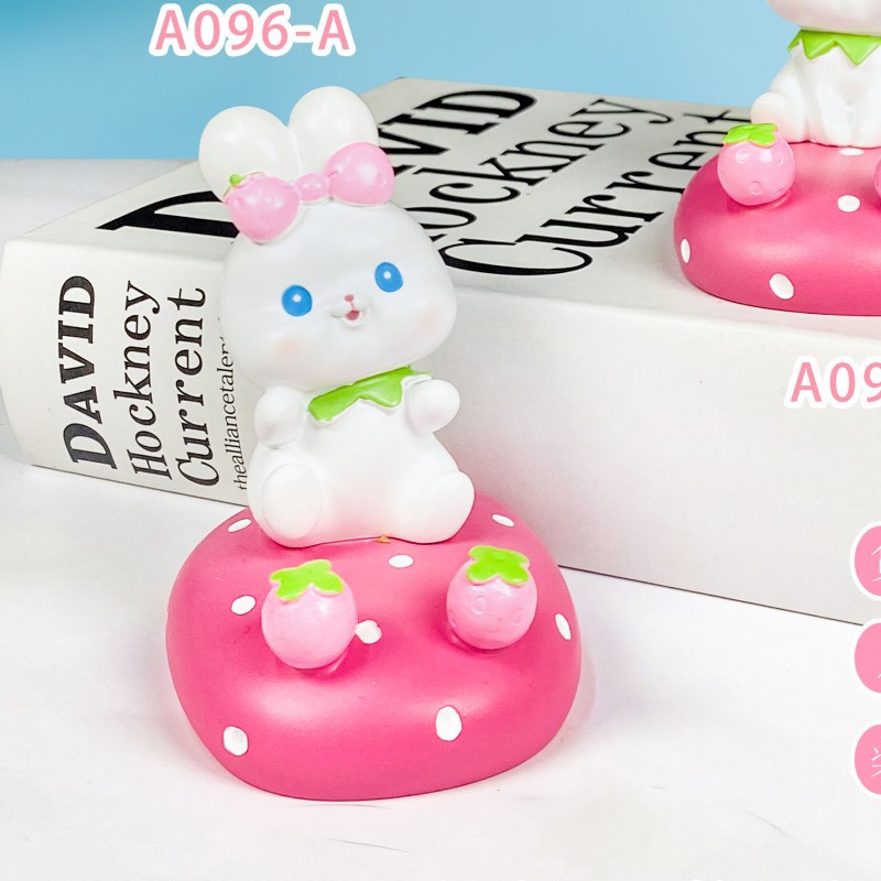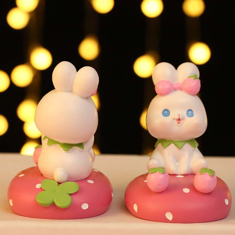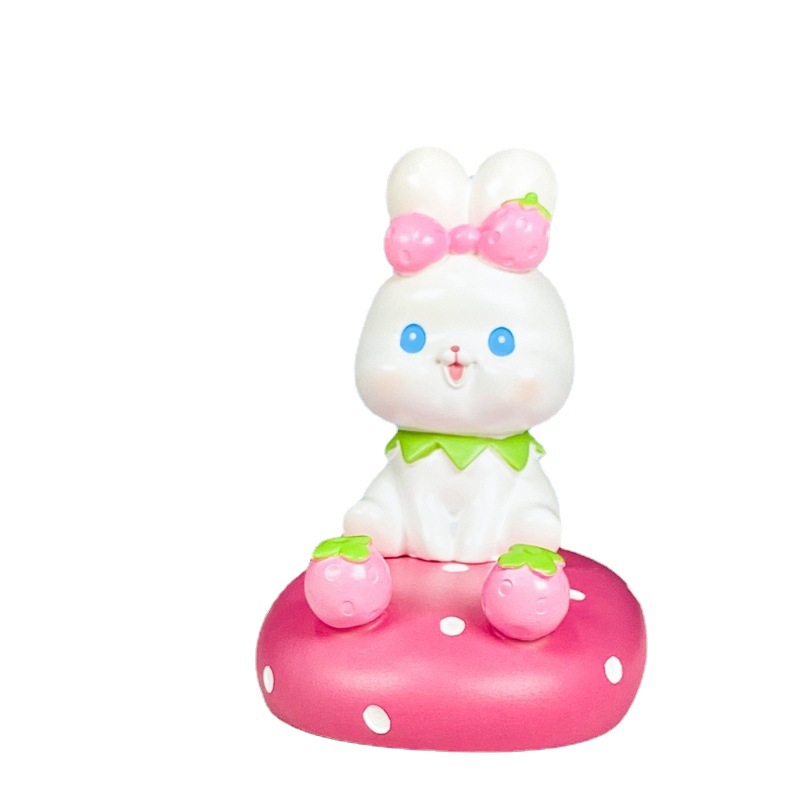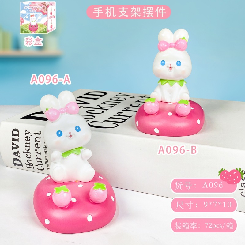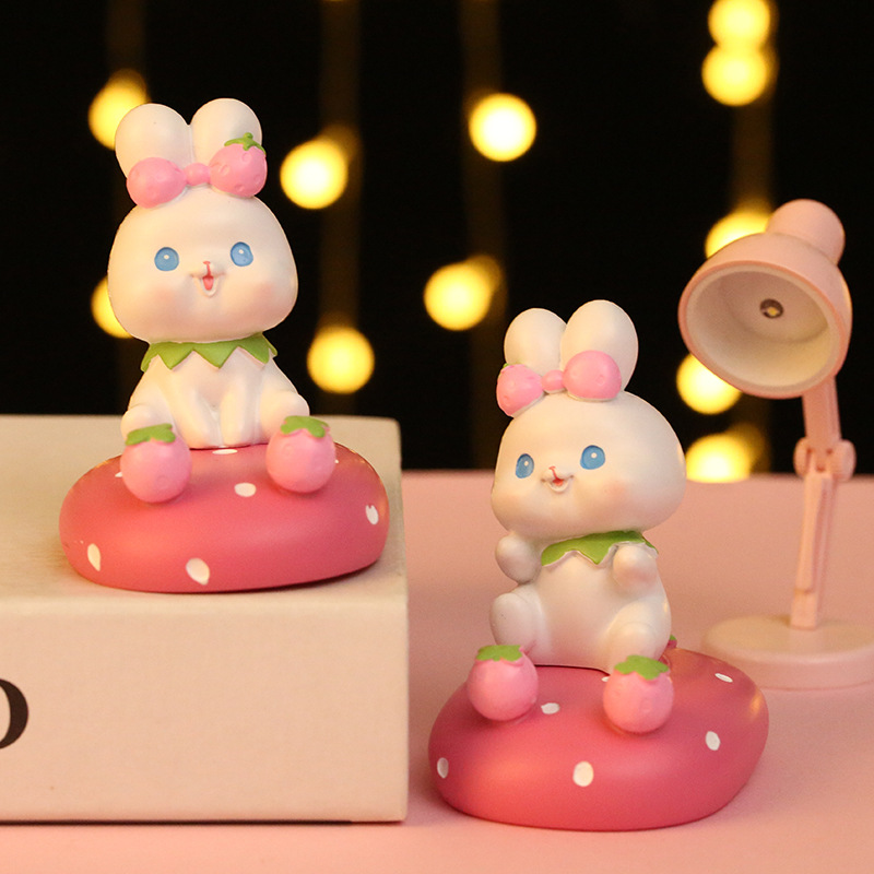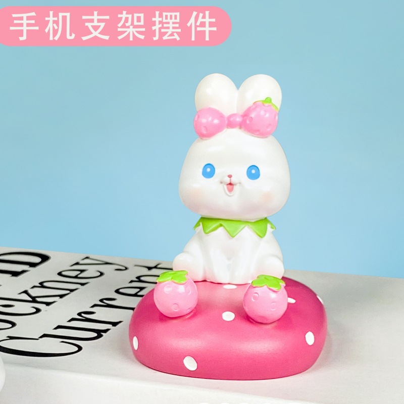 甜心草莓兔手机座 少女心手机支架 树脂可爱办公室桌面装饰品摆件