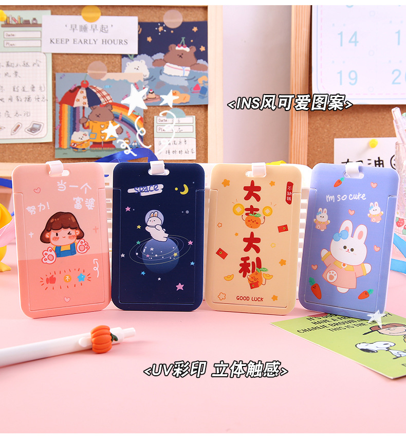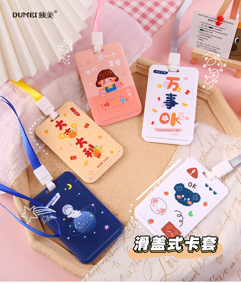 独美-滑盖推拉式卡套 卡通ins风学生饭卡水卡公交卡证件套展示牌