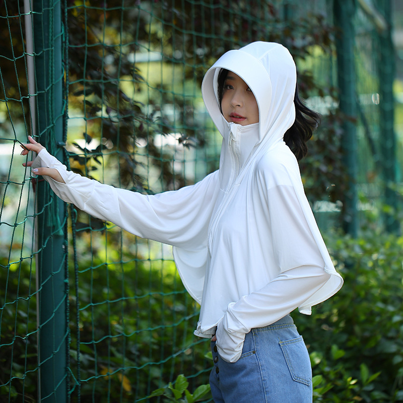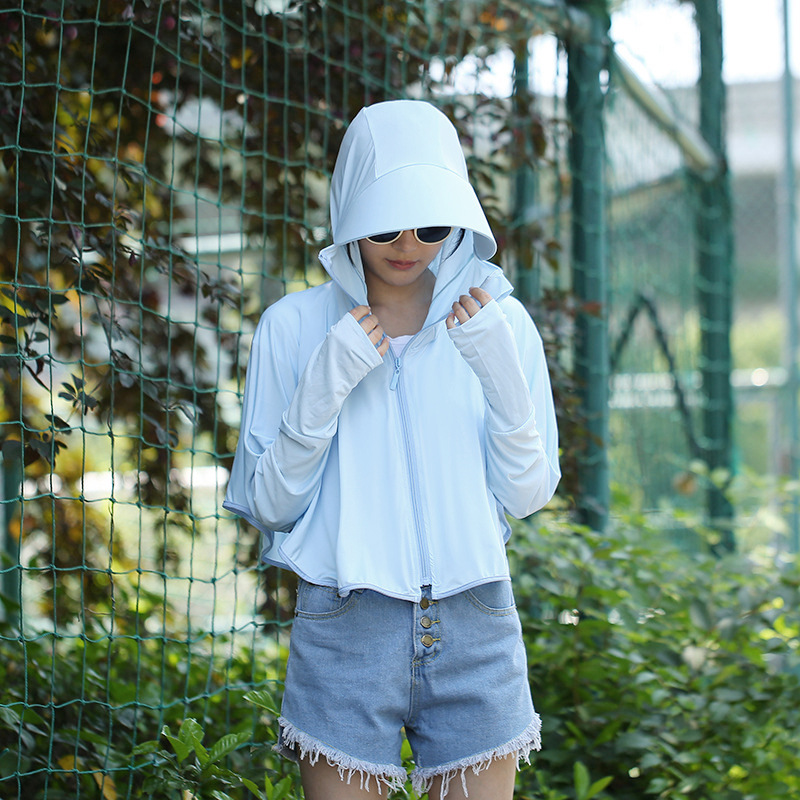 韩版冰丝长款防晒衣带帽遮阳户外骑车遮阳服夏季防晒外套防嗮衣女
