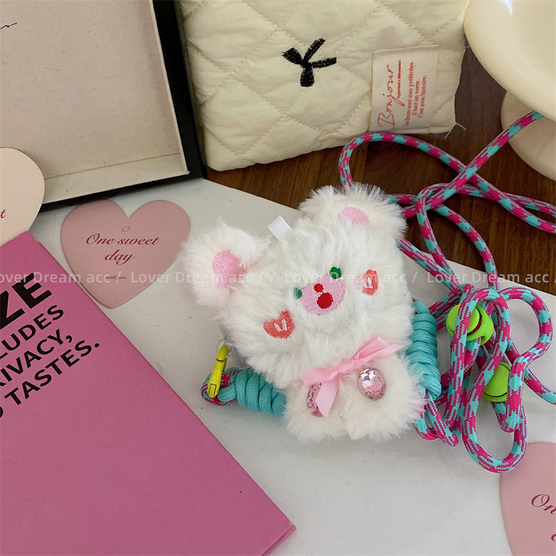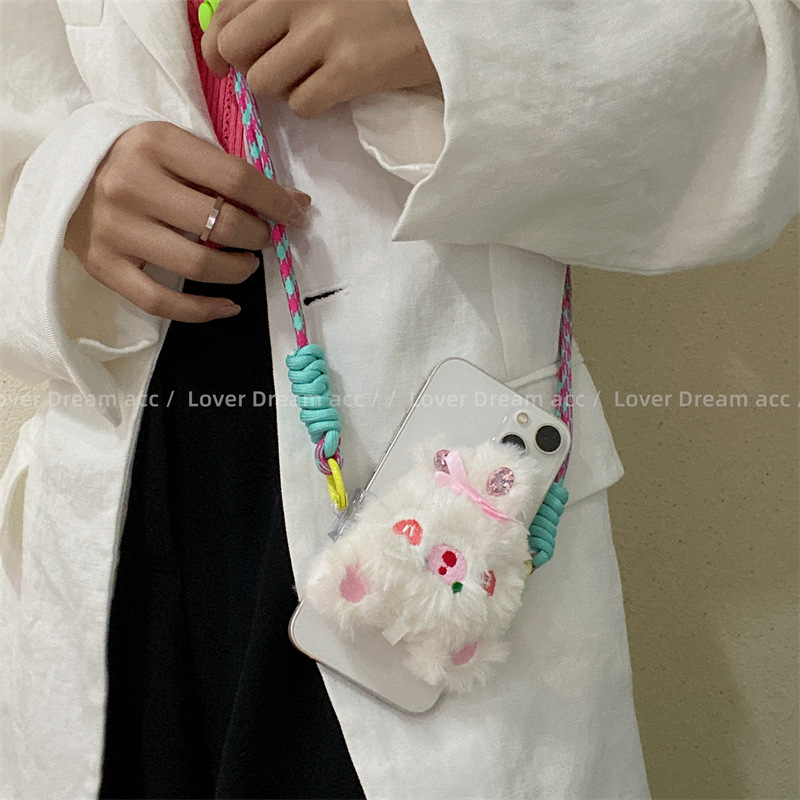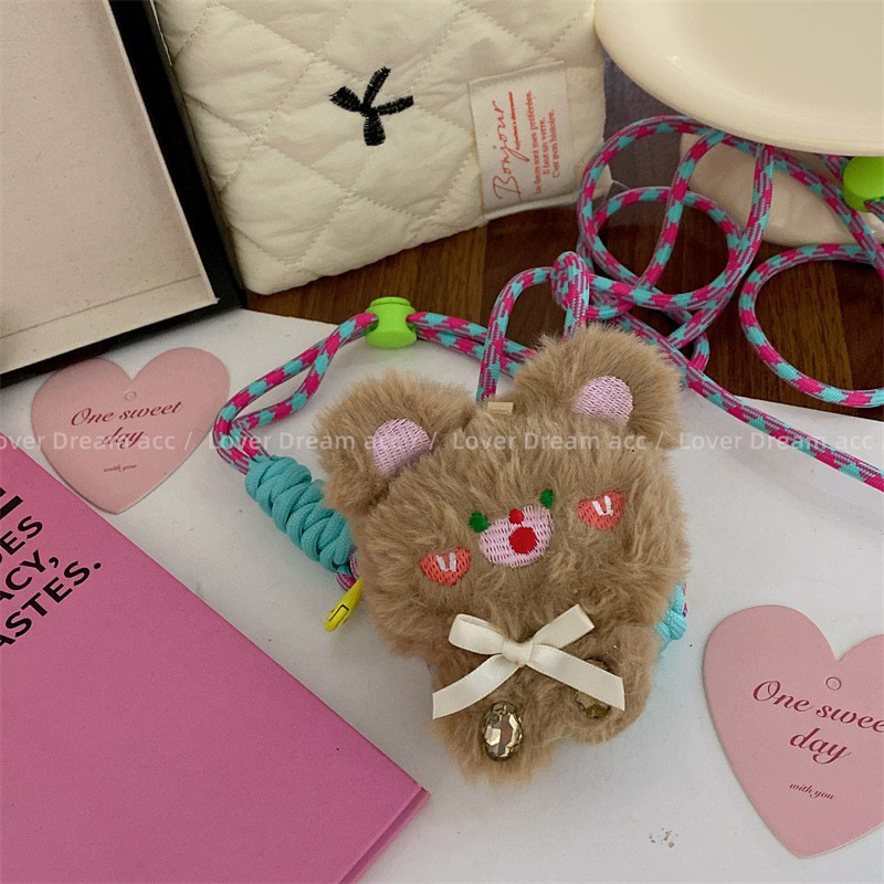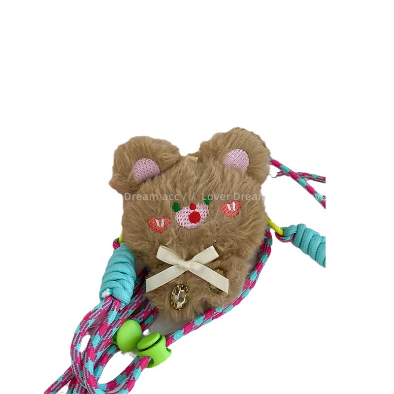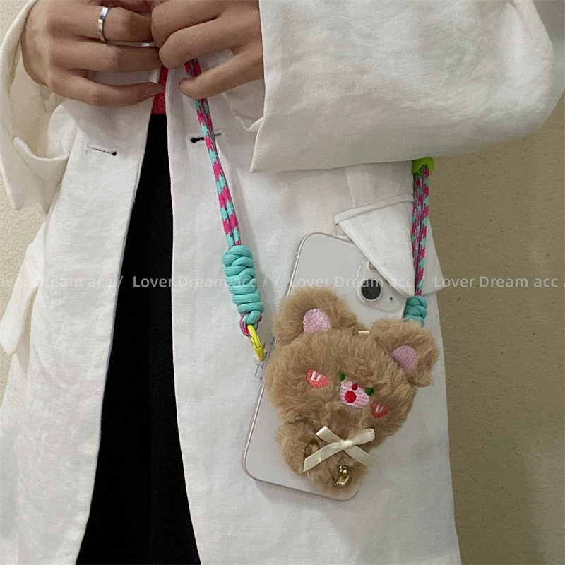 韩国新款毛绒小熊玩偶公仔挂绳手机壳 甜美可爱手机链挂件挂饰女