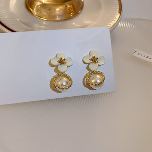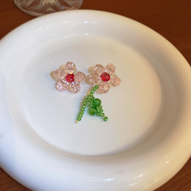 银针水晶人鱼姬珍珠花朵耳环韩国气质简约小巧耳钉耳坠清新耳饰女