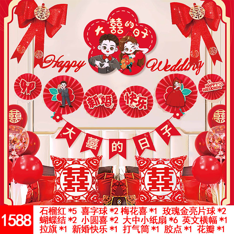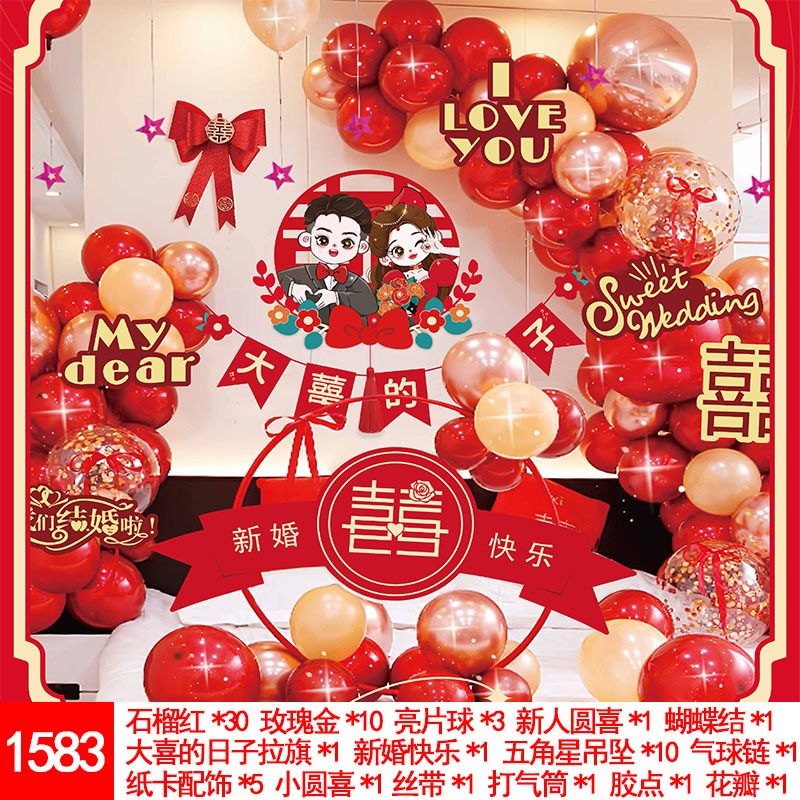 双层结婚气球套装婚房布置装饰婚礼采购清单求婚喜庆婚庆用品批发