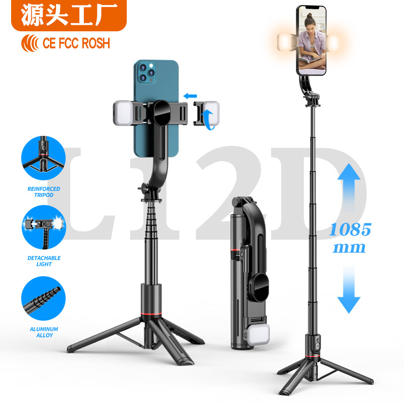 L12蓝牙自拍杆批发一体式手机支架桌面三脚架直播补光灯手机架夹