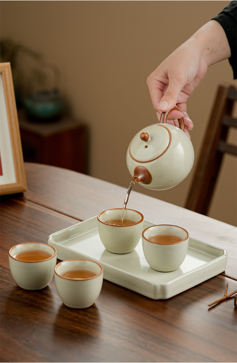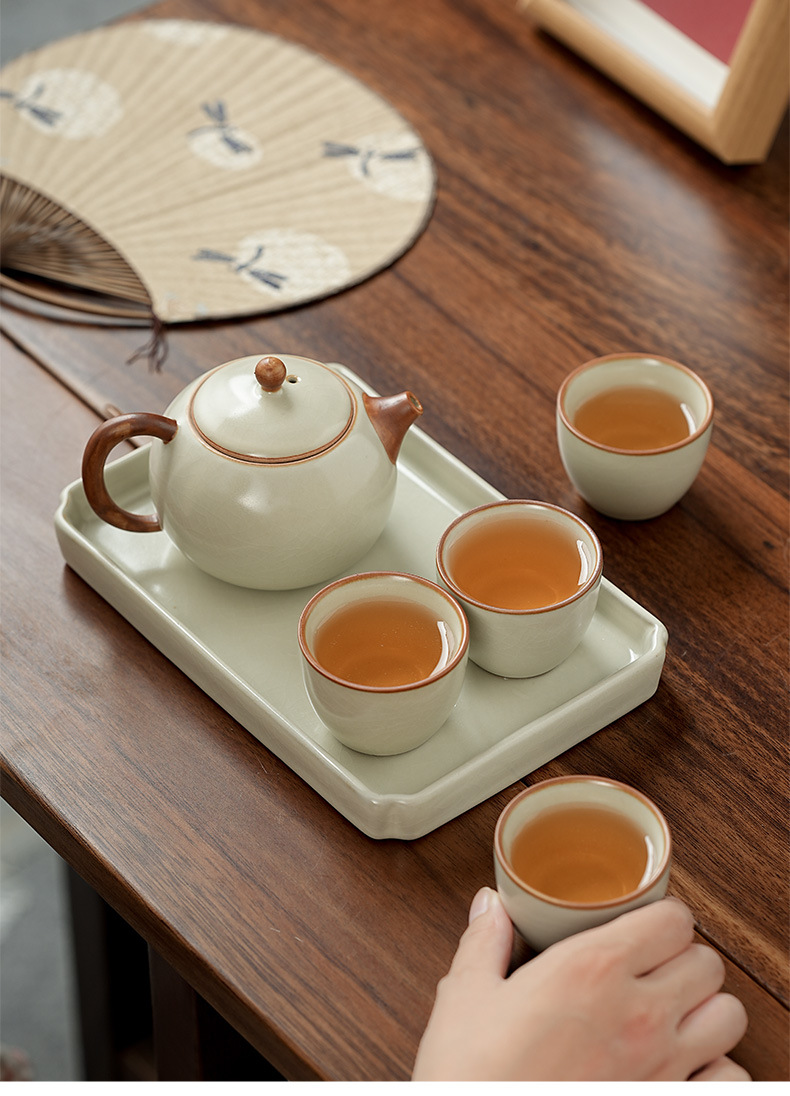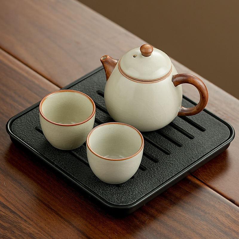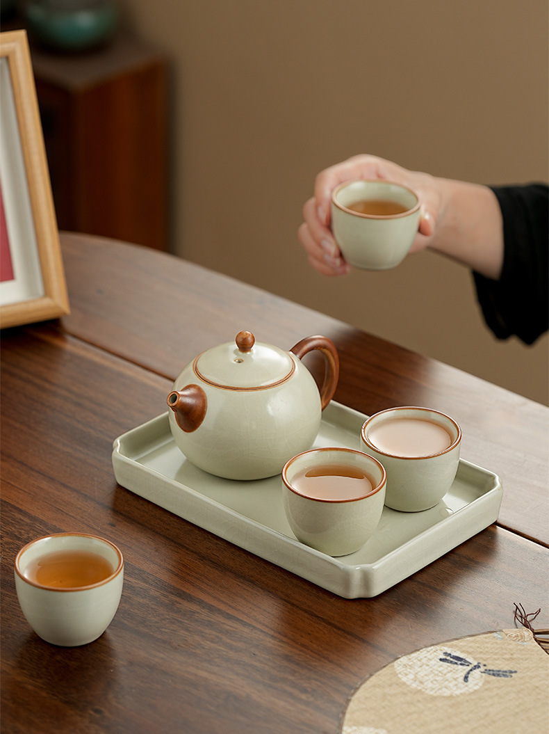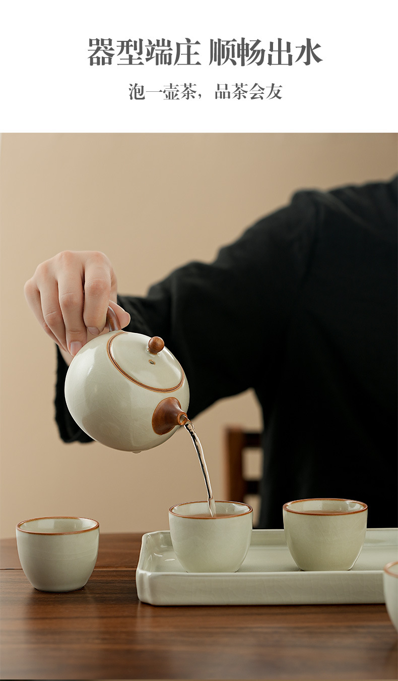 高档汝窑功夫茶具套装家用客厅陶瓷泡茶壶单壶一壶两杯便携小套装