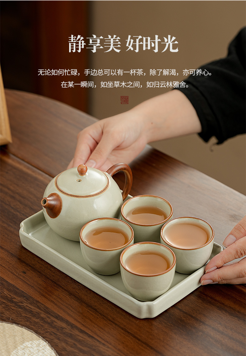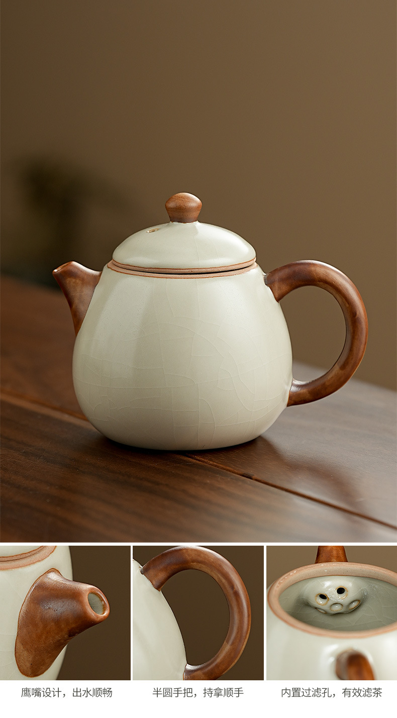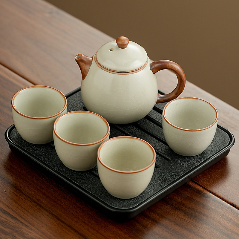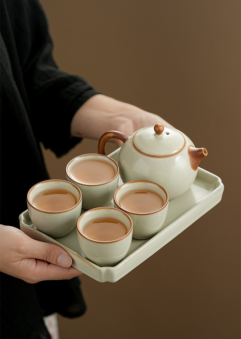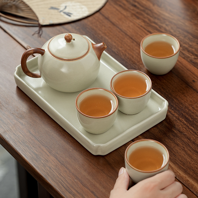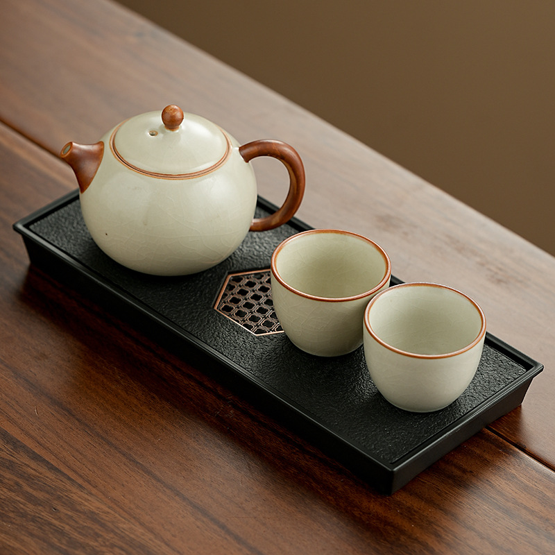 高档汝窑功夫茶具套装家用客厅陶瓷泡茶壶单壶一壶两杯便携小套装
