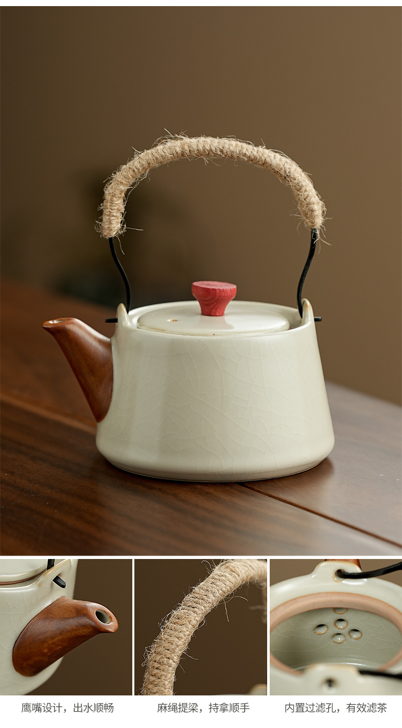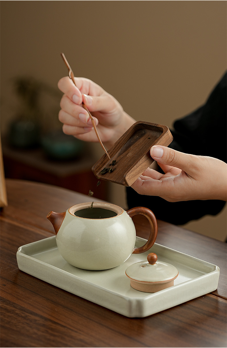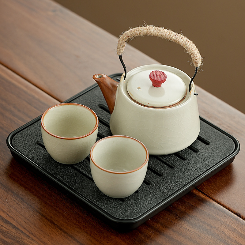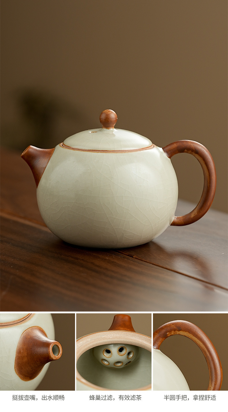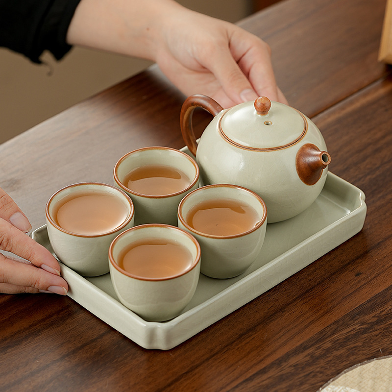 高档汝窑功夫茶具套装家用客厅陶瓷泡茶壶单壶一壶两杯便携小套装