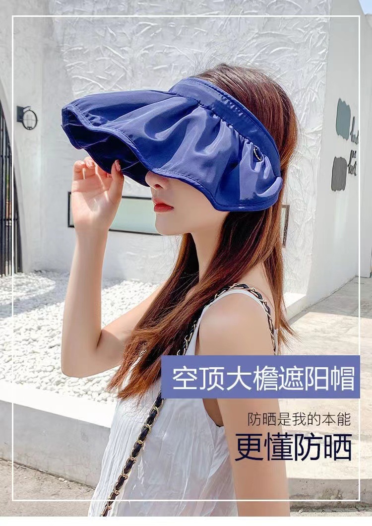 黑胶贝壳帽女士韩版防晒帽可卷发箍遮阳帽防紫外线空顶网红太阳帽