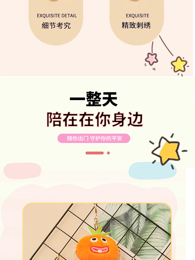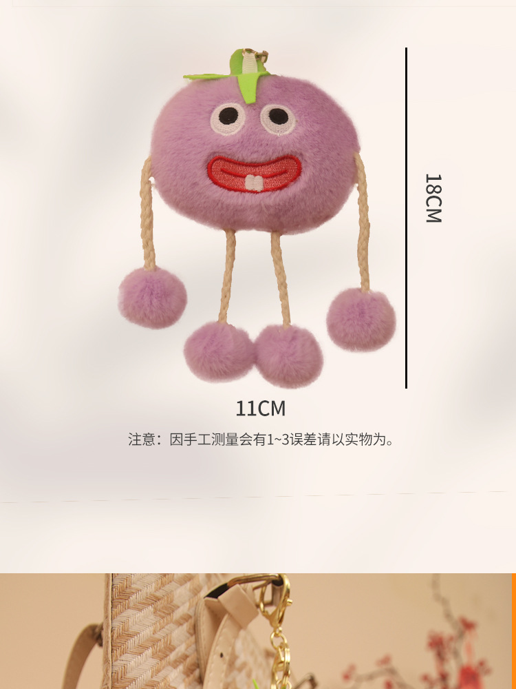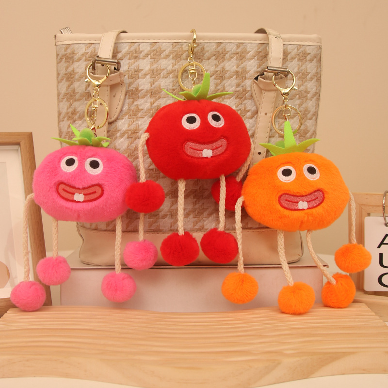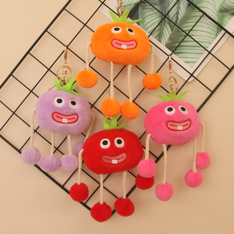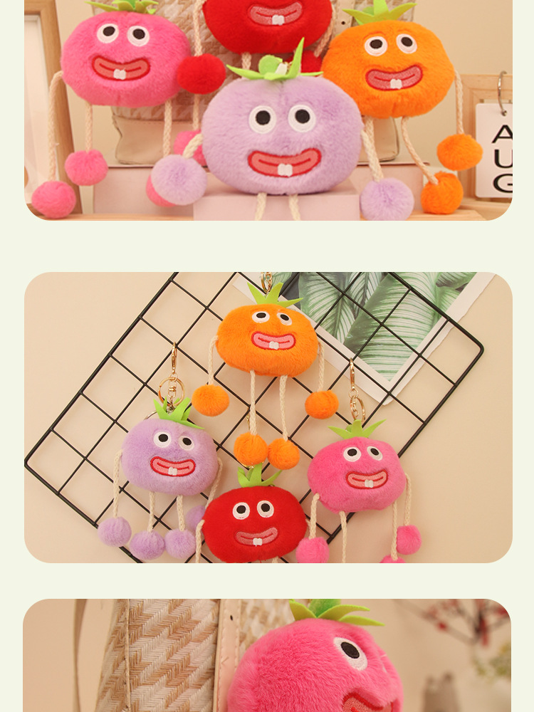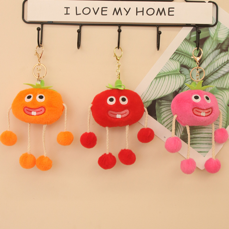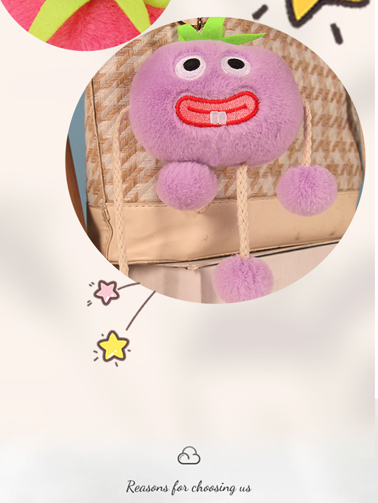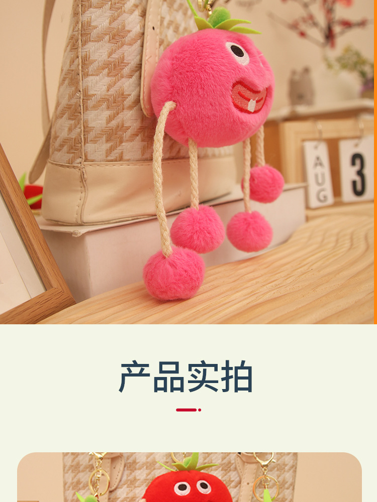 卡通毛绒抽拉水果学生可爱小公仔挂饰钥匙链饰品玩偶背包钥匙扣