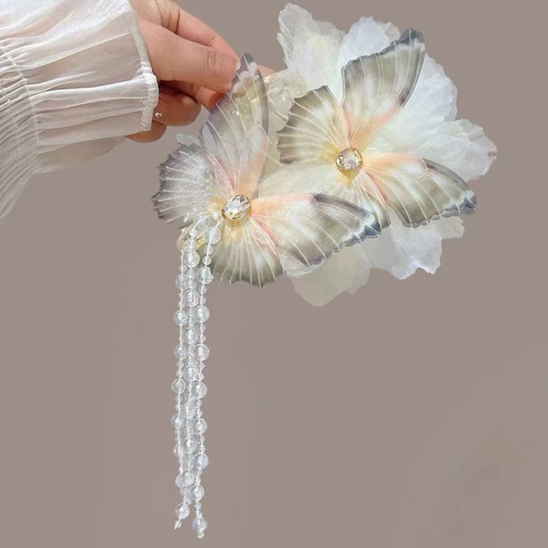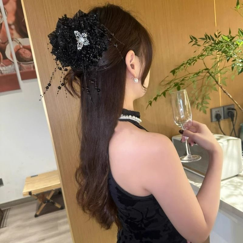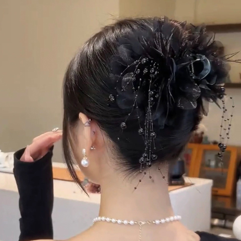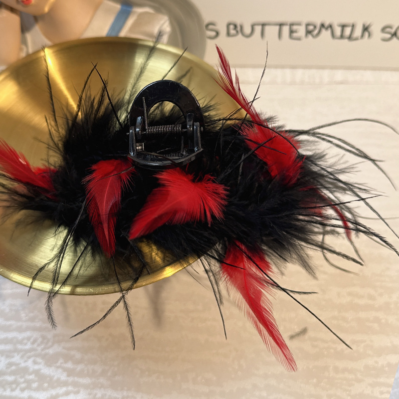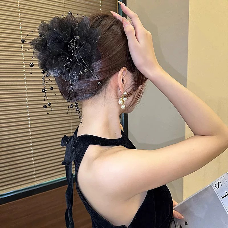 气质高级感仙气珍珠羽毛大号抓夹女后脑勺盘发鲨鱼夹百搭毛毛发夹