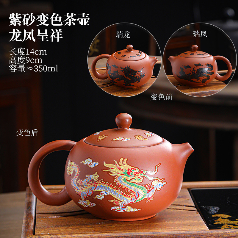 龙凤呈祥紫砂壶遇热变色西施壶紫砂壶功夫茶具家用泡茶壶伴手礼品