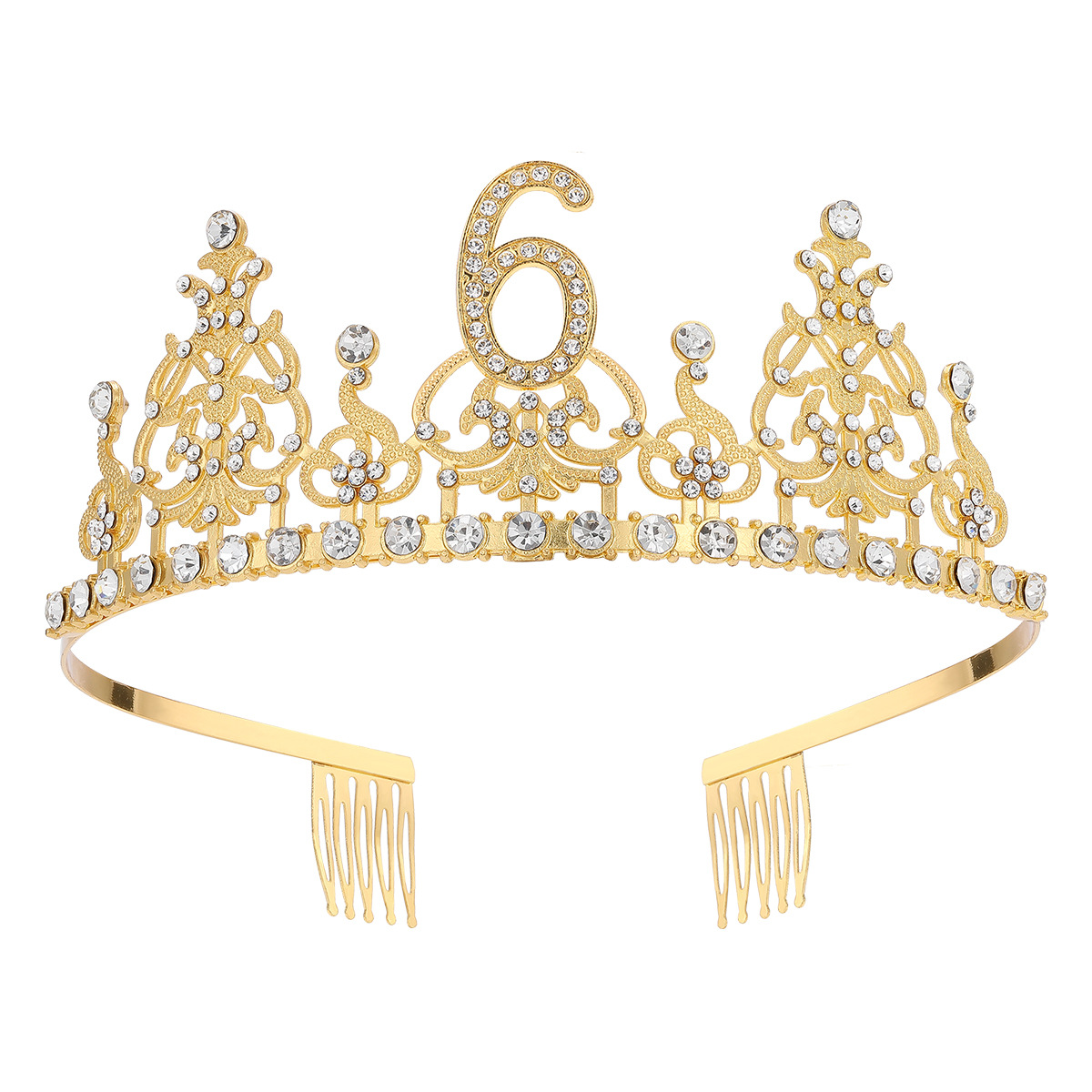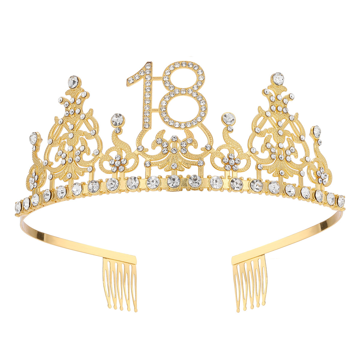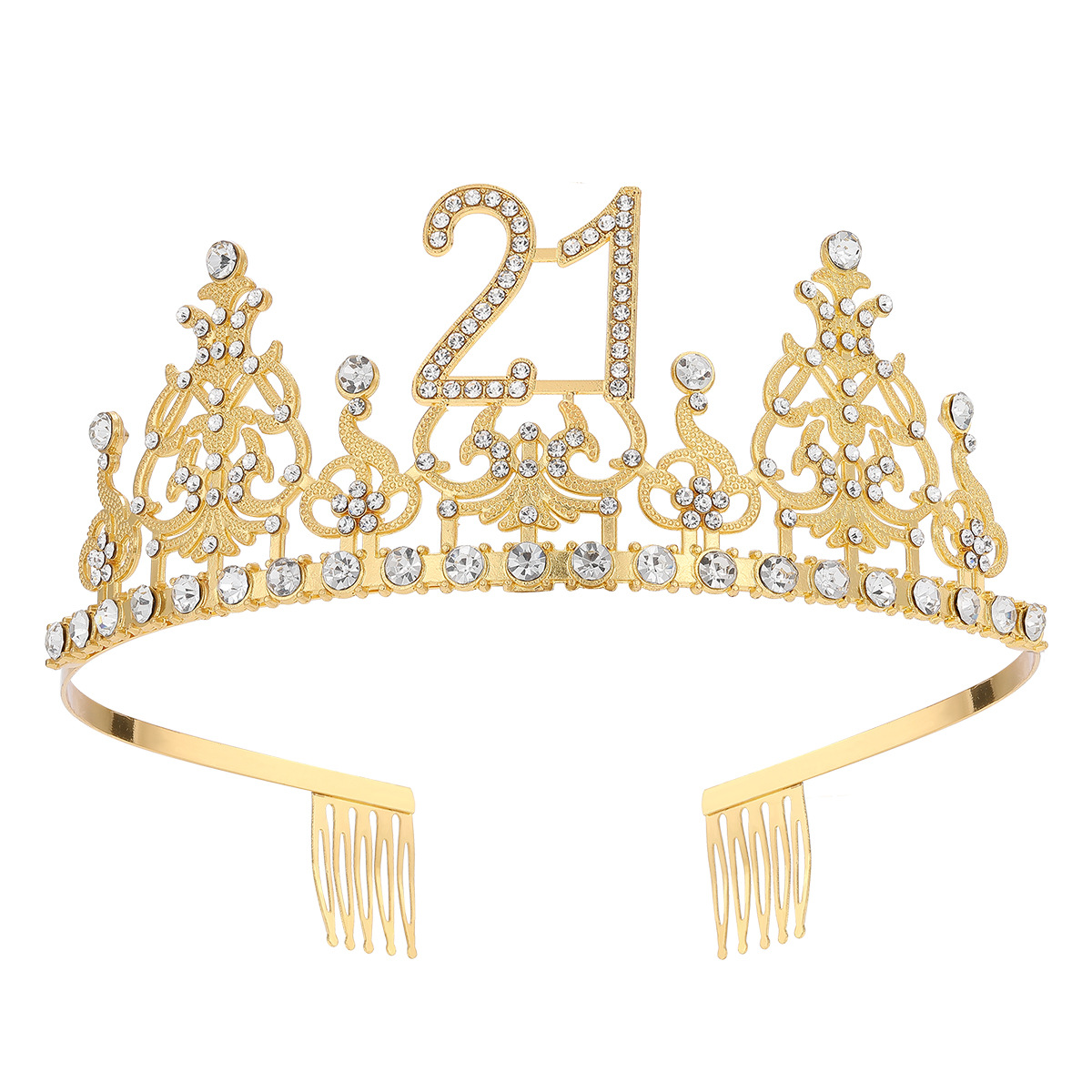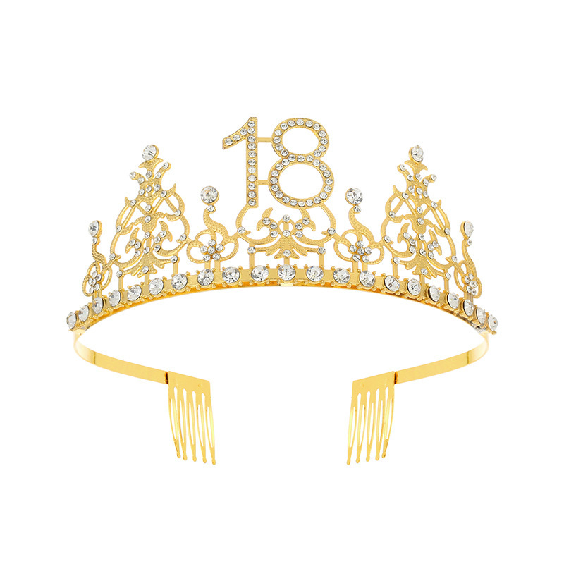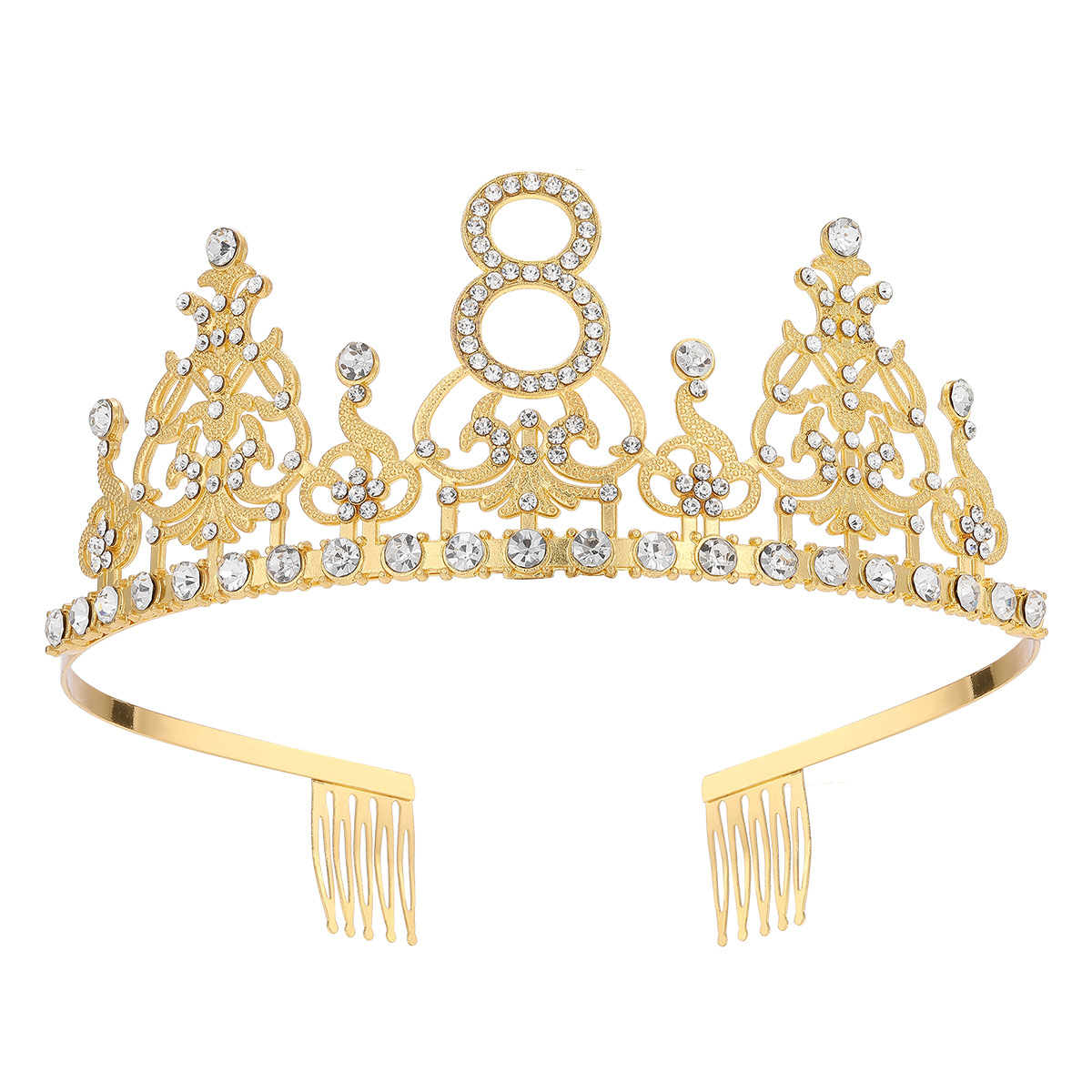新款欧美时尚合金数字皇冠带钻头饰18岁生日派对珍珠合金发箍批发