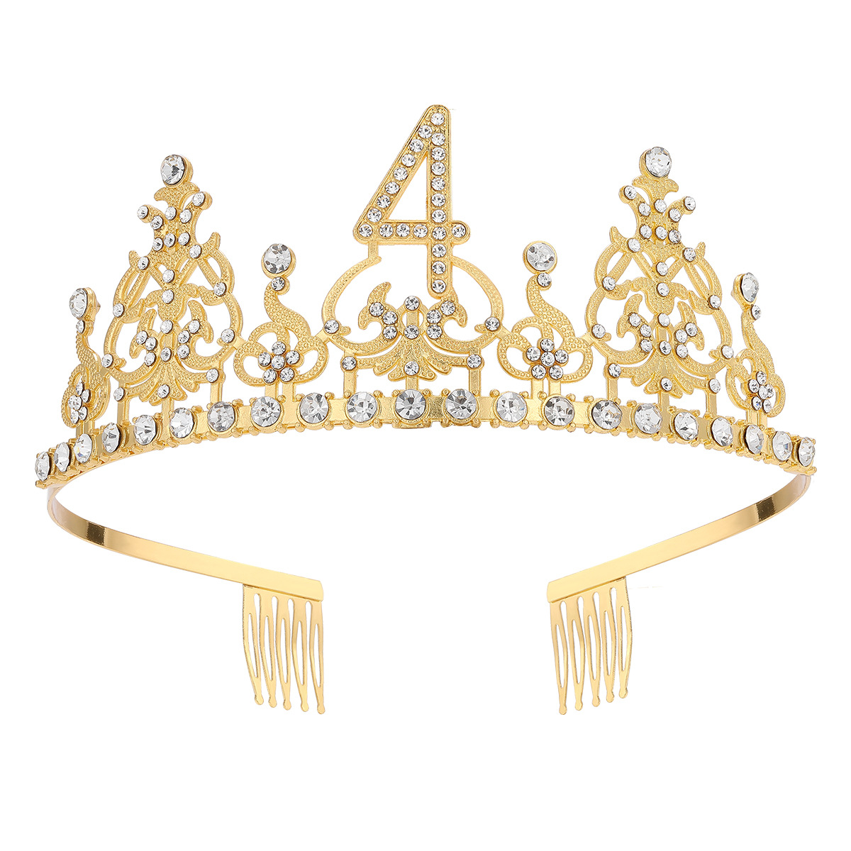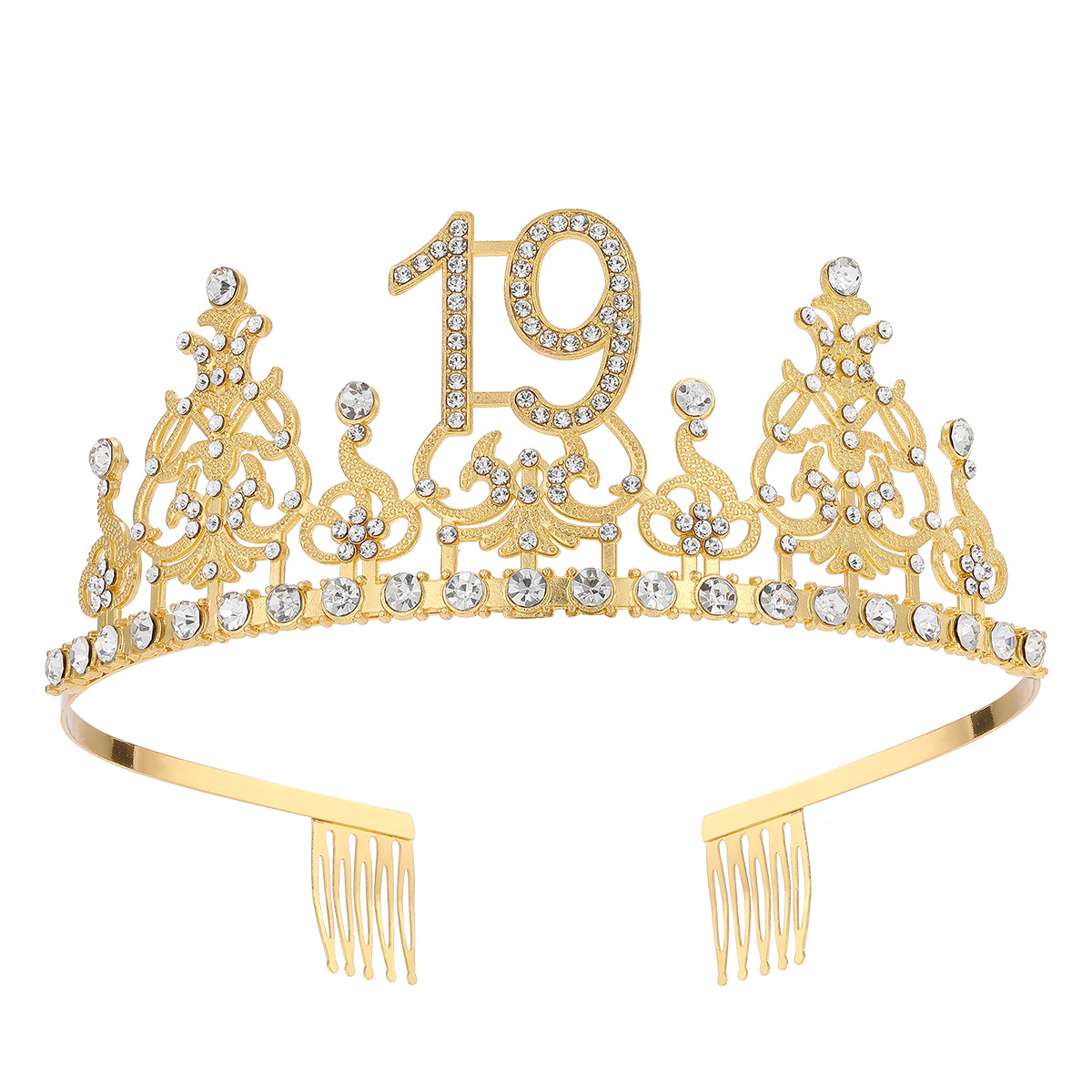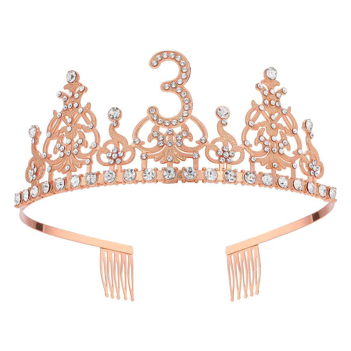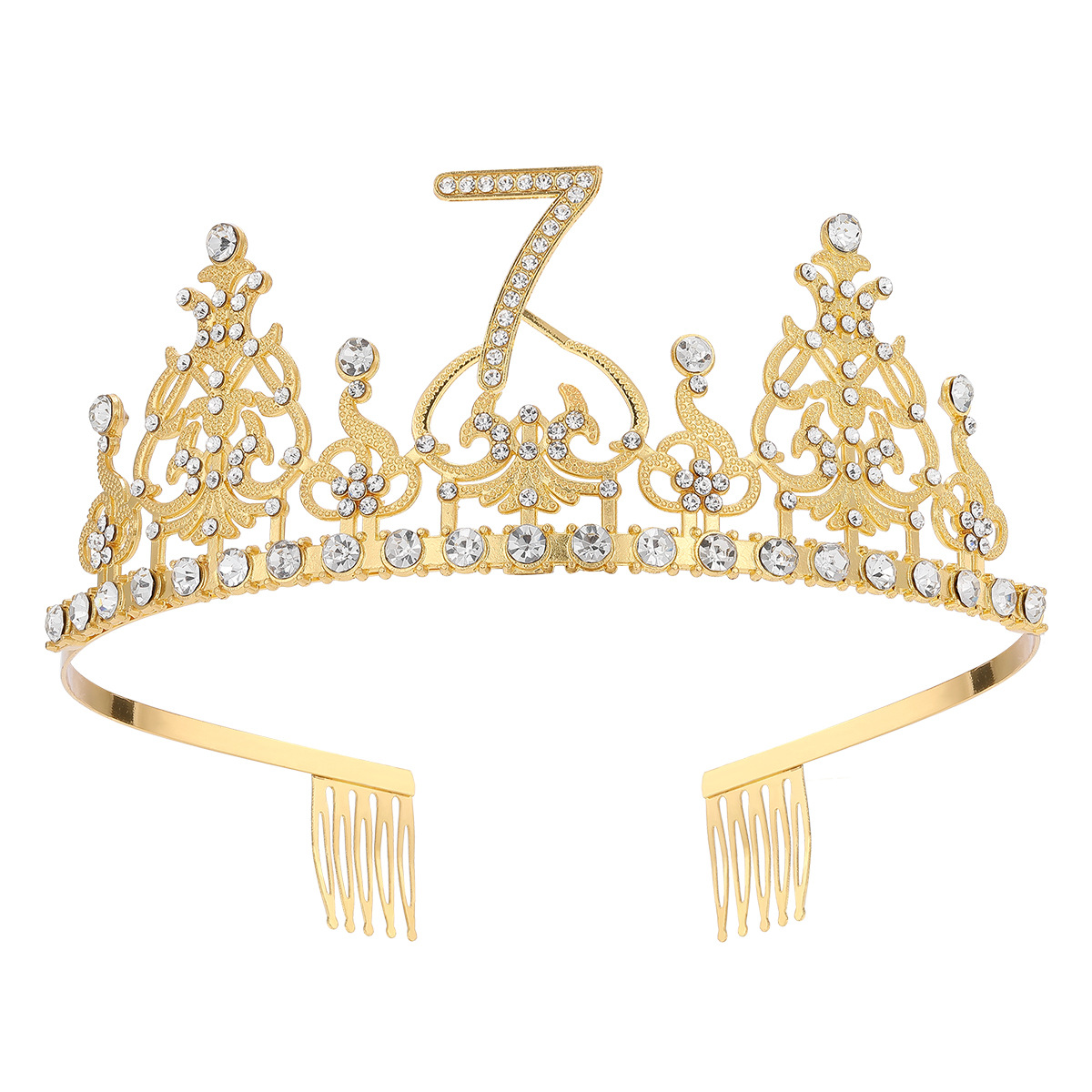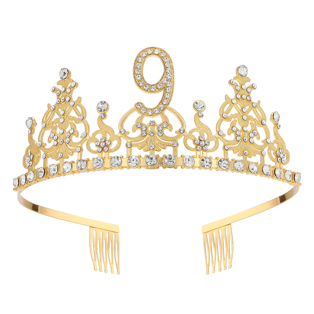新款欧美时尚合金数字皇冠带钻头饰18岁生日派对珍珠合金发箍批发