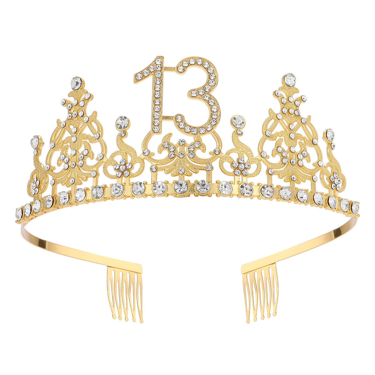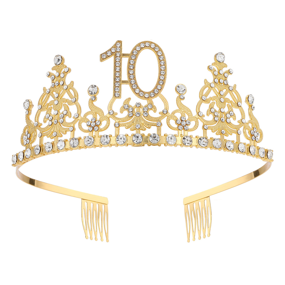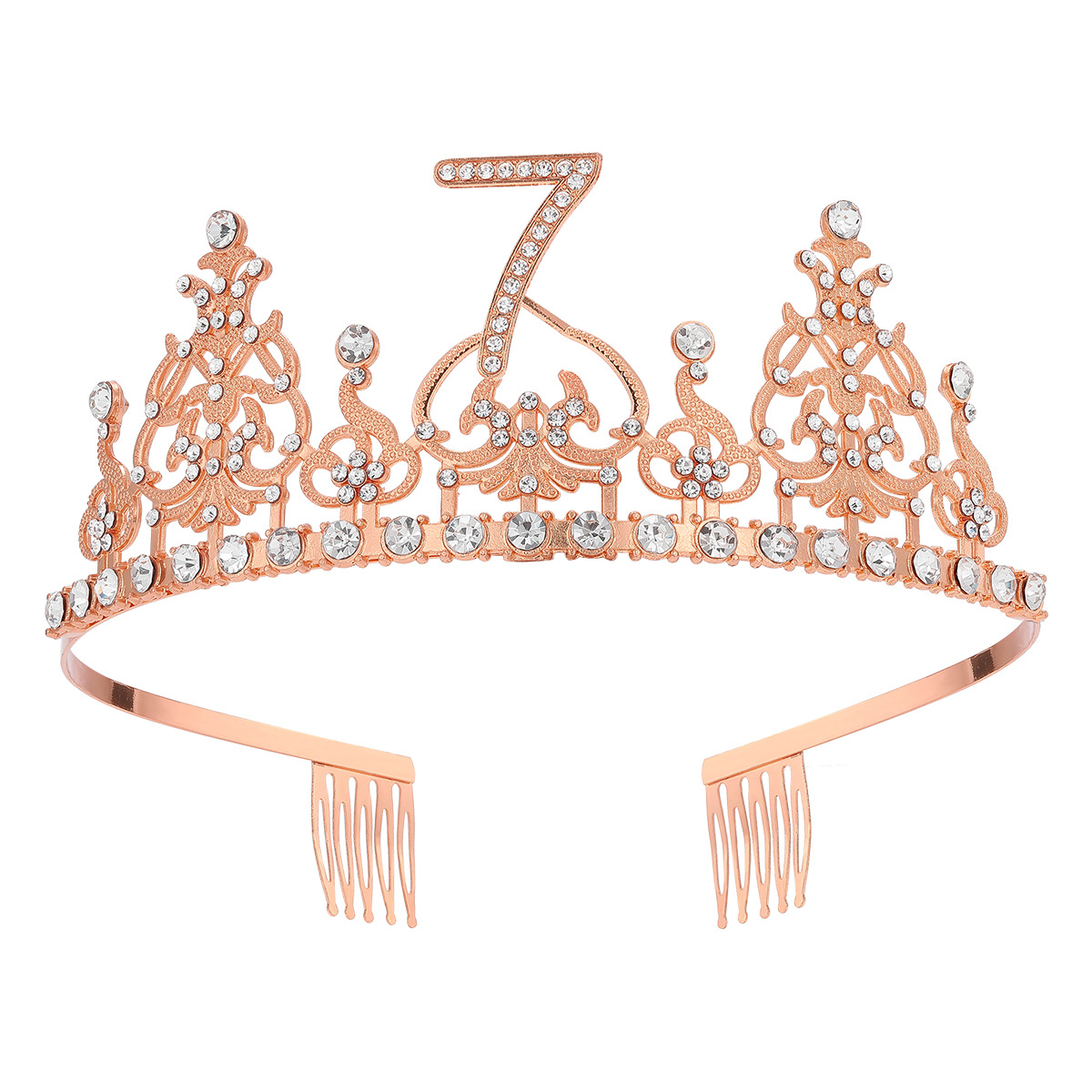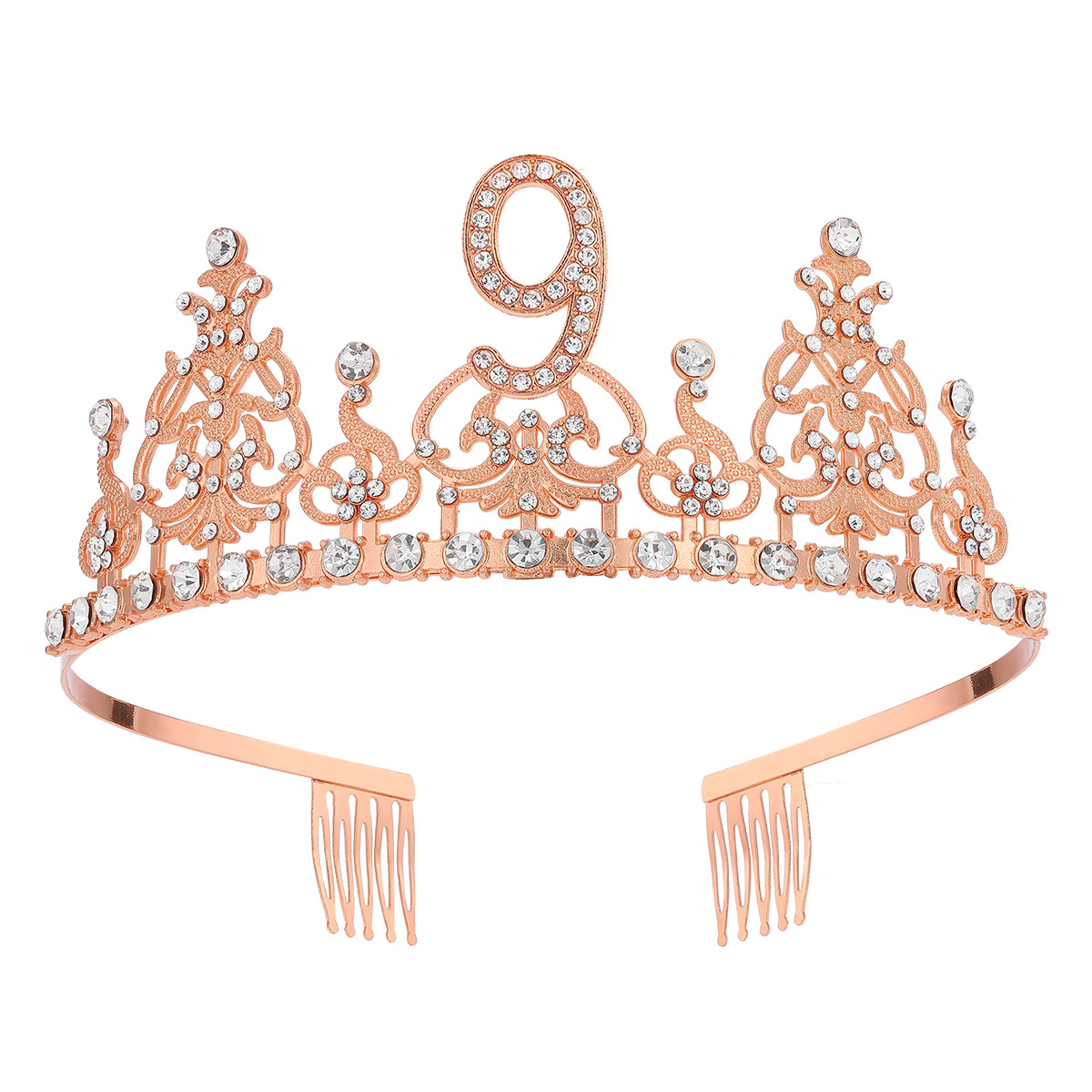 新款欧美时尚合金数字皇冠带钻头饰18岁生日派对珍珠合金发箍批发