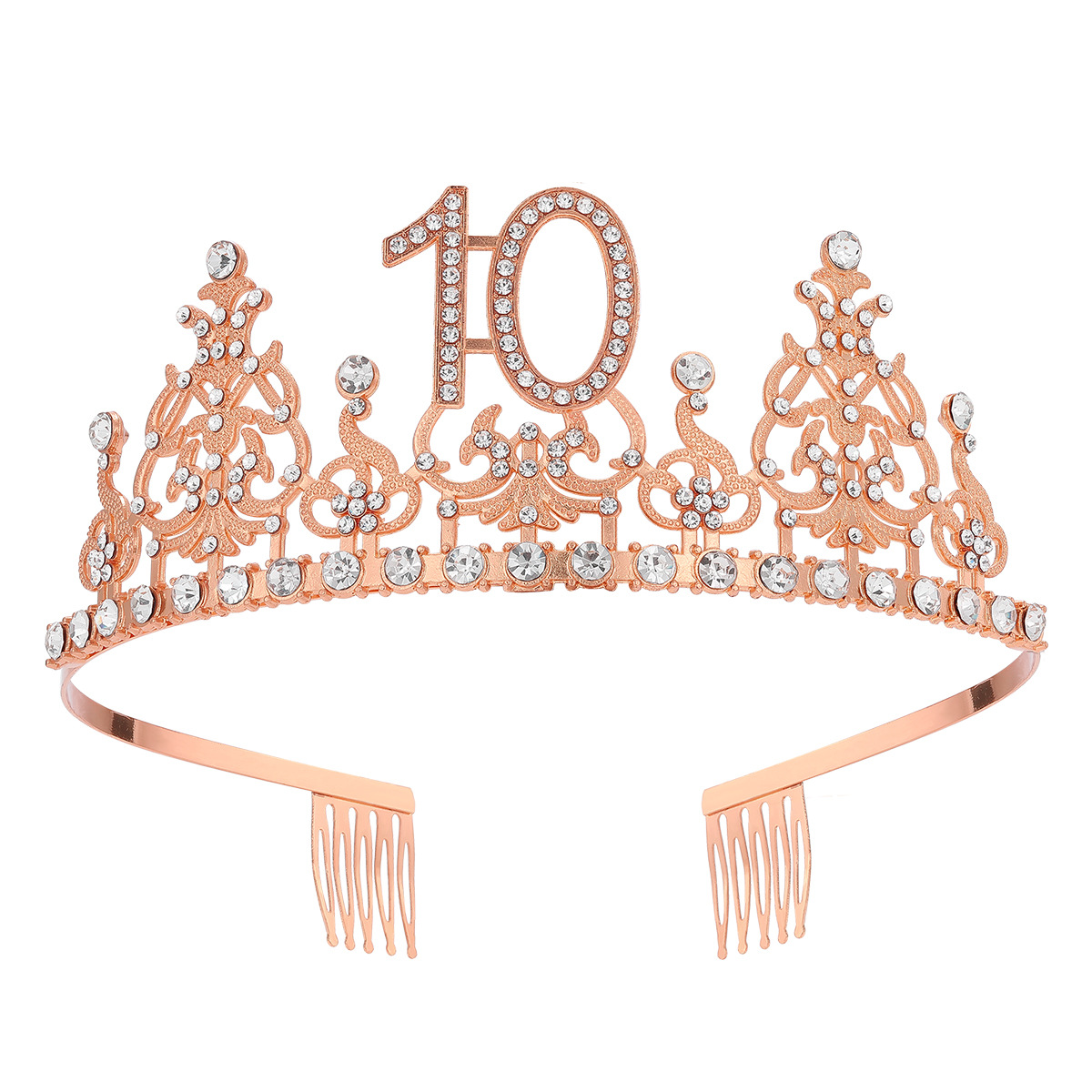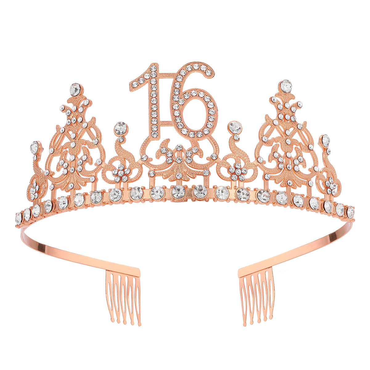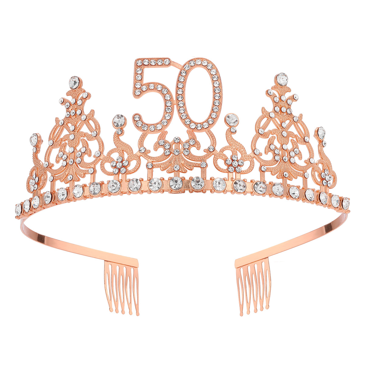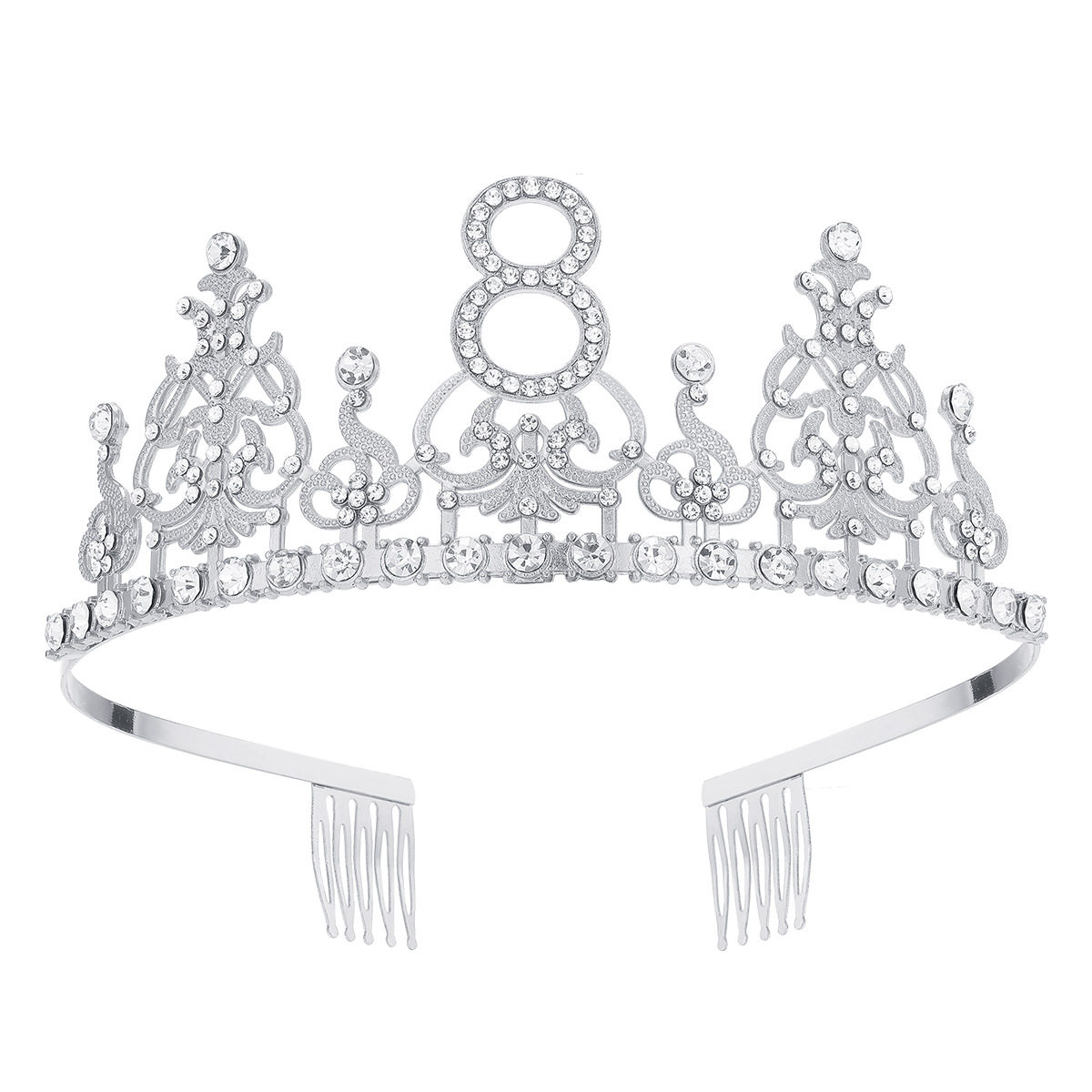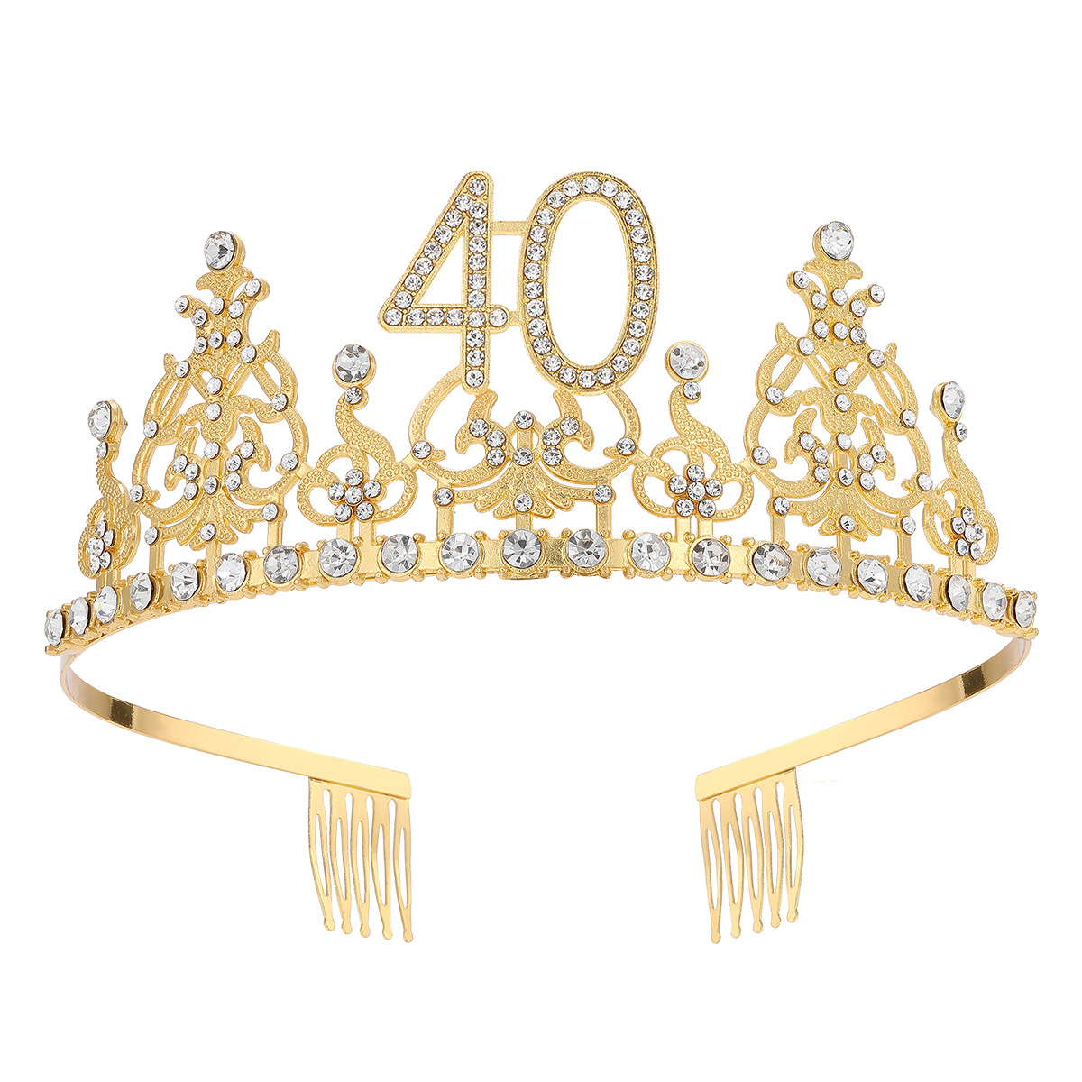 新款欧美时尚合金数字皇冠带钻头饰18岁生日派对珍珠合金发箍批发