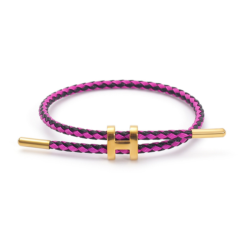 现货新款不锈钢钢丝绳手链 可调节3D硬金配绳手链 钛钢防水手镯