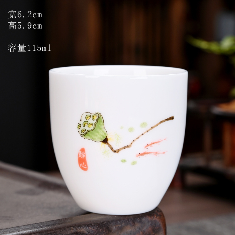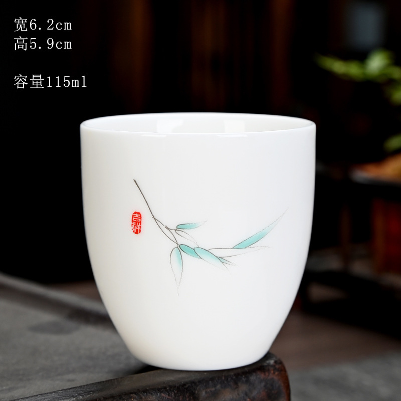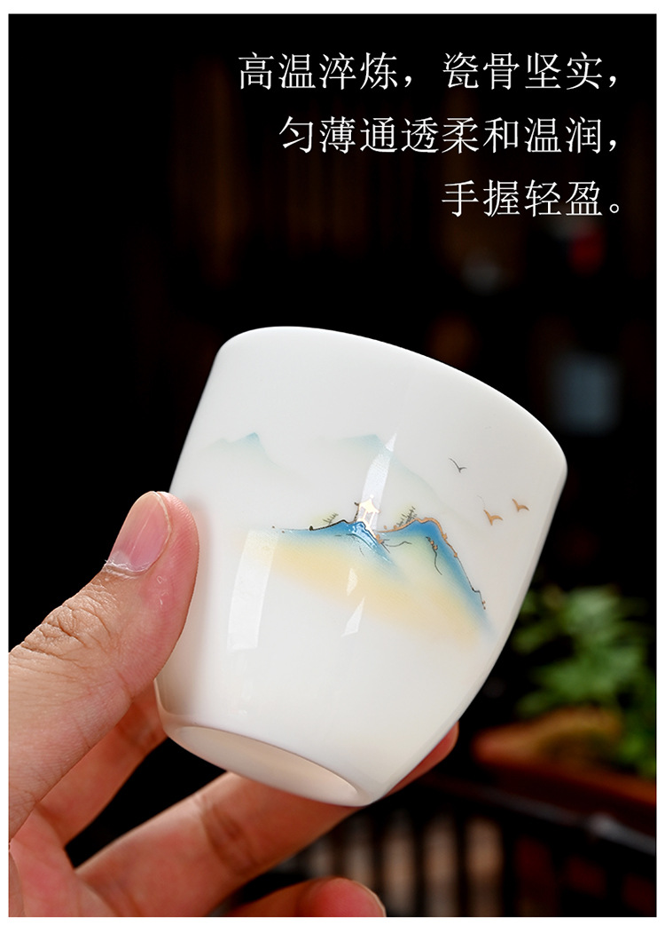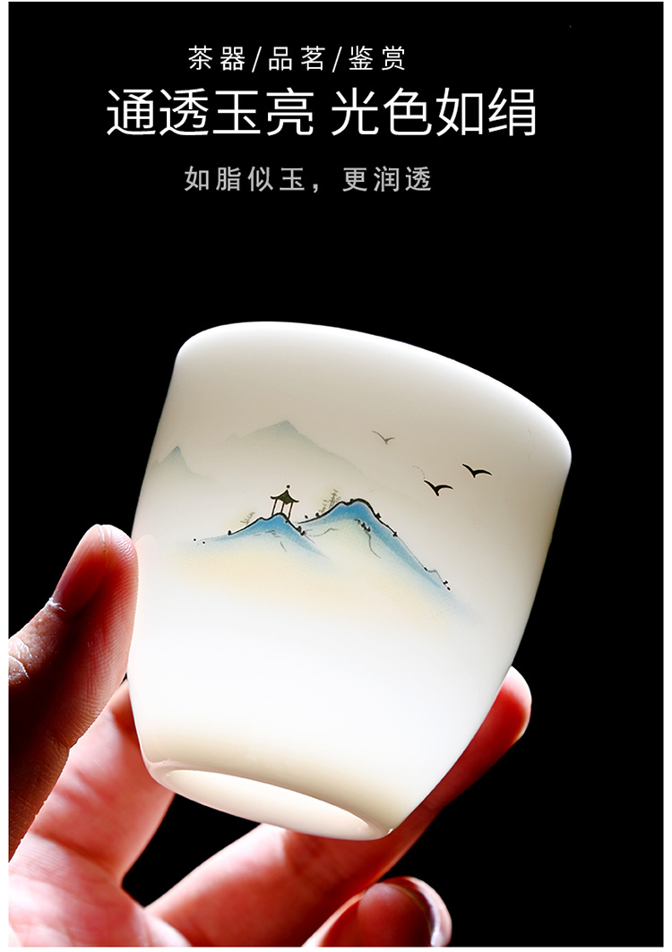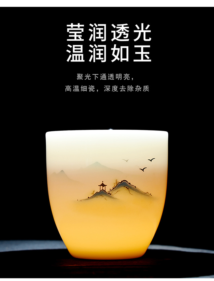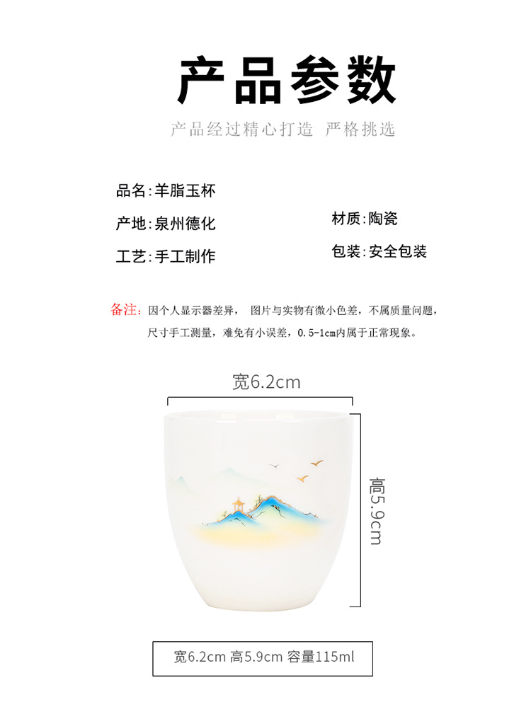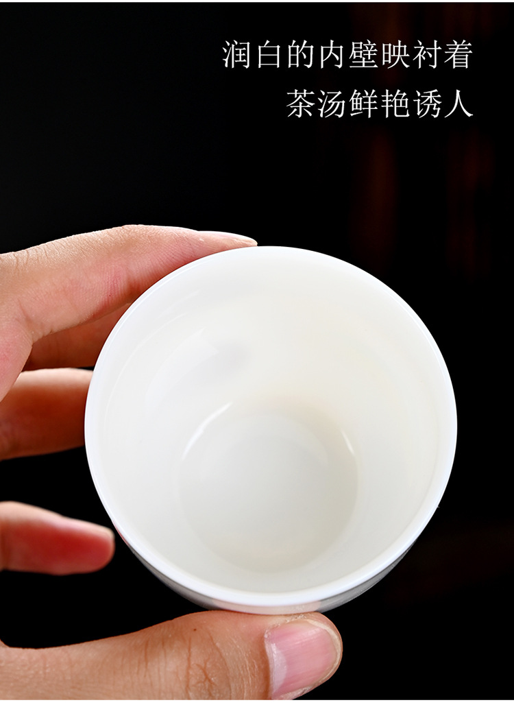德化羊脂玉功夫茶杯品茗杯小茶杯纯白陶瓷茶盏主人杯家用茶具促销