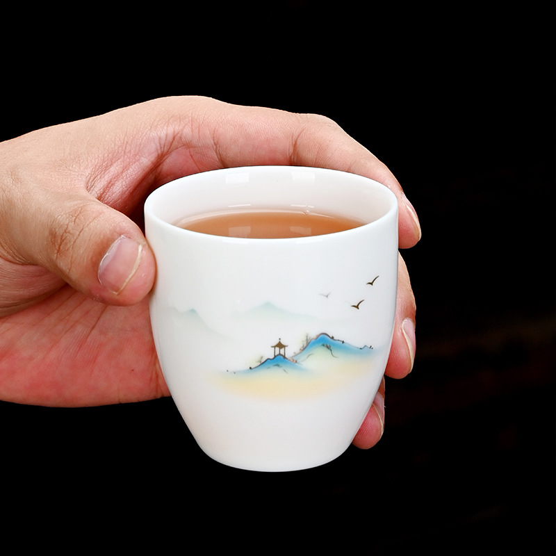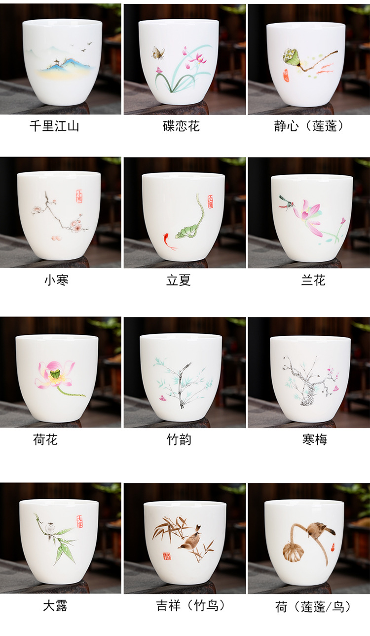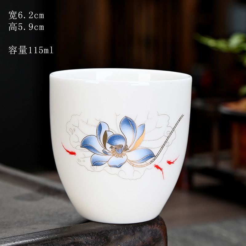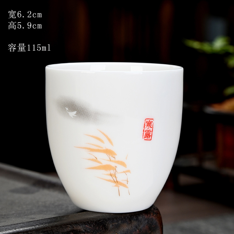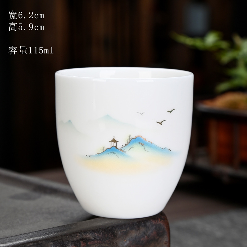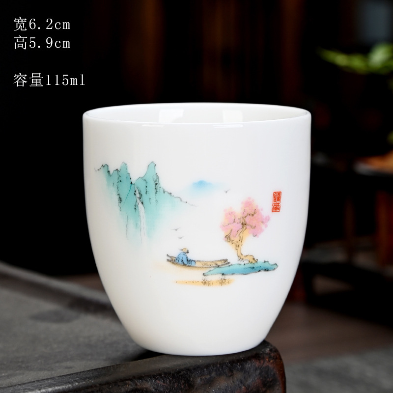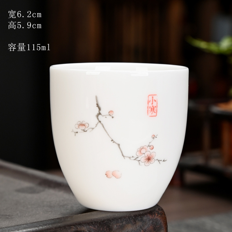 德化羊脂玉功夫茶杯品茗杯小茶杯纯白陶瓷茶盏主人杯家用茶具促销