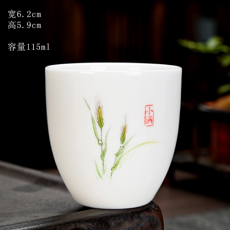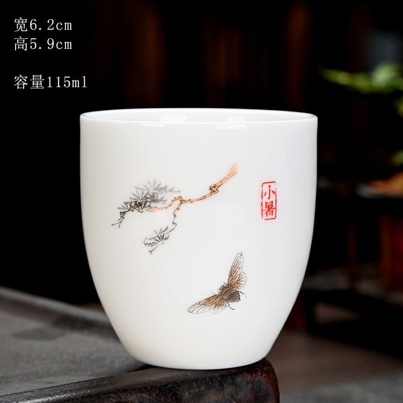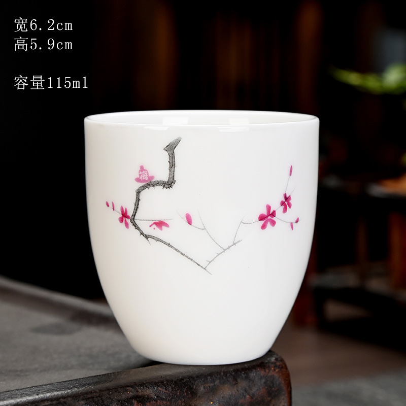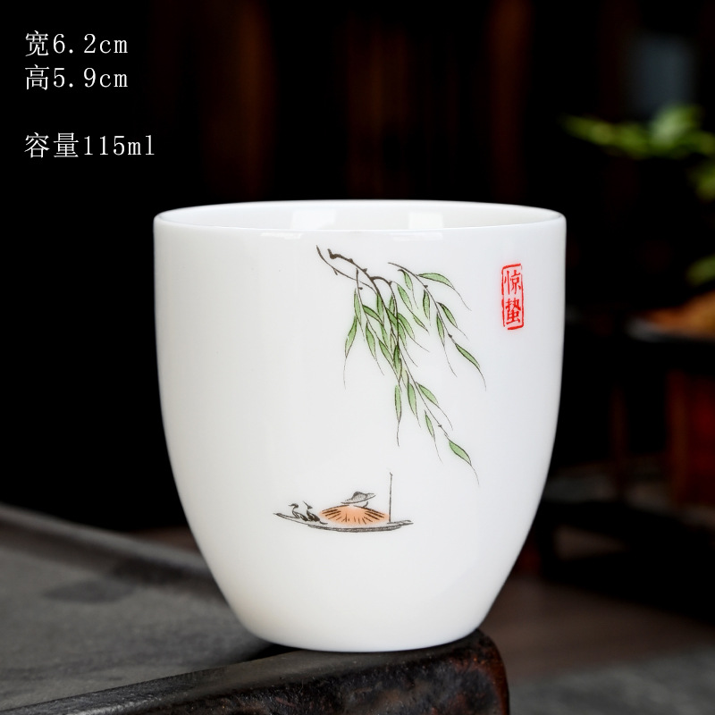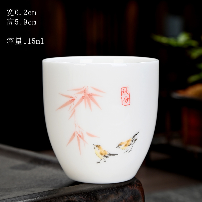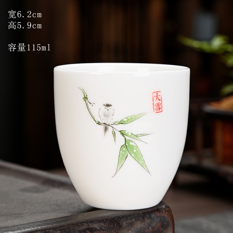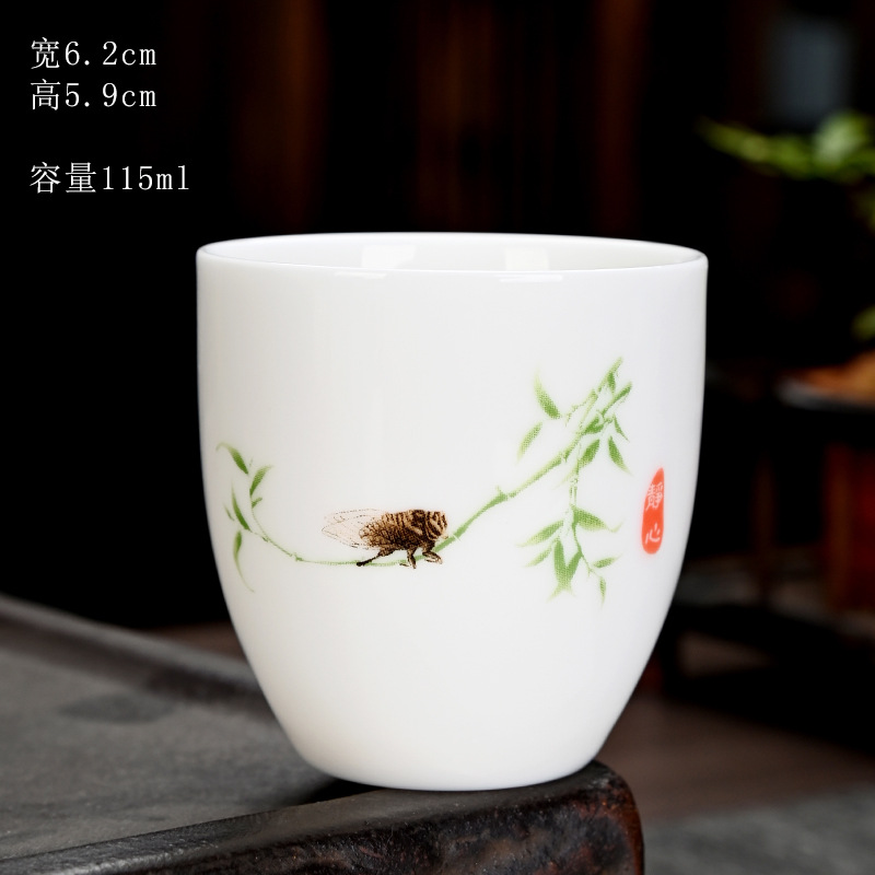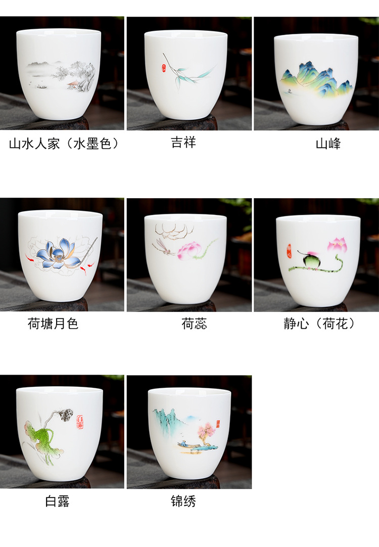 德化羊脂玉功夫茶杯品茗杯小茶杯纯白陶瓷茶盏主人杯家用茶具促销