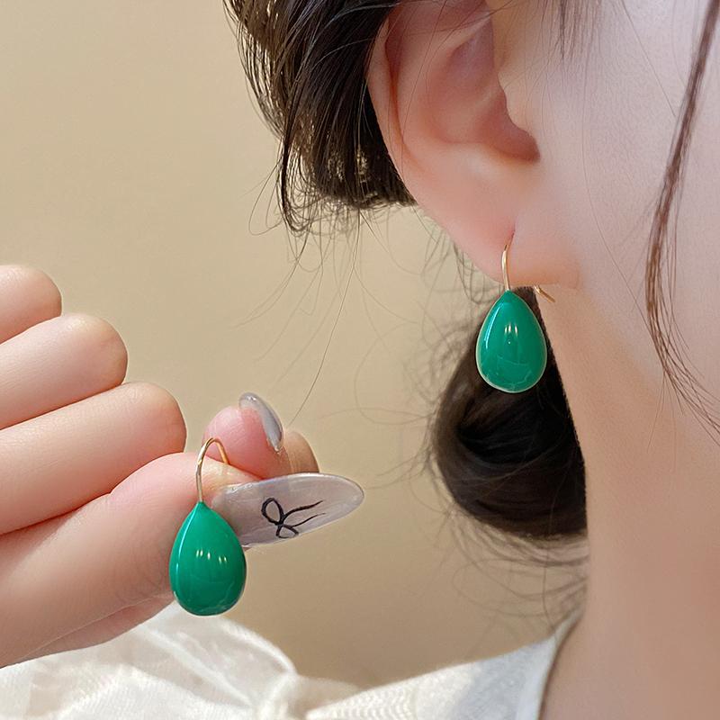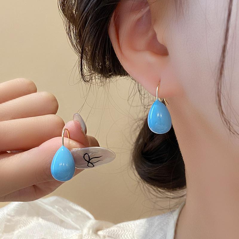 夏季彩色滴油钛钢耳环简约设计百搭轻奢高级感夏天水滴耳饰不掉色