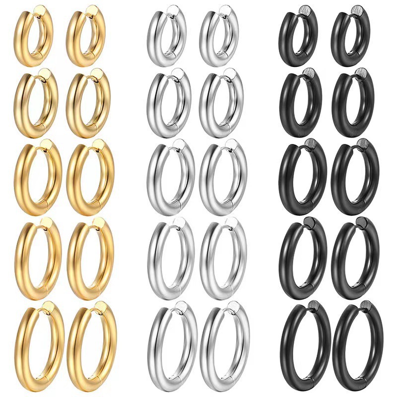 跨境定制不锈钢耳环夸张高级感高奢美式钛钢耳环18k金素圈耳饰