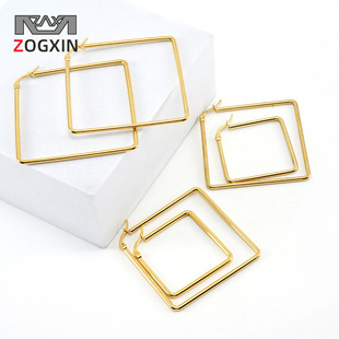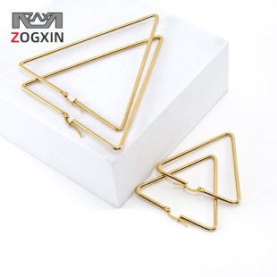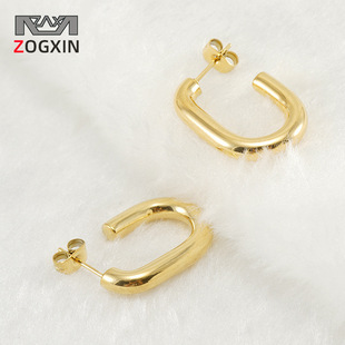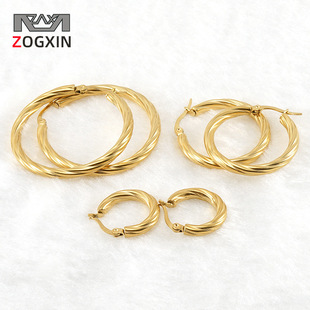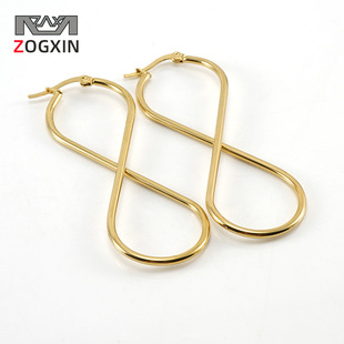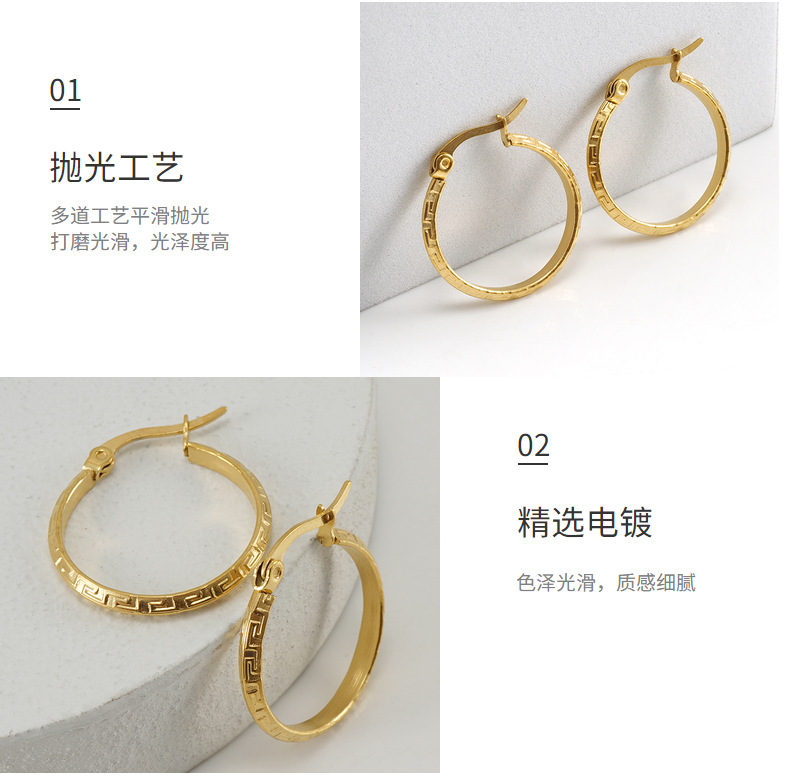 跨境18K金色钛钢长城纹卡扣耳环女时尚简约不锈钢耳圈耳饰批发