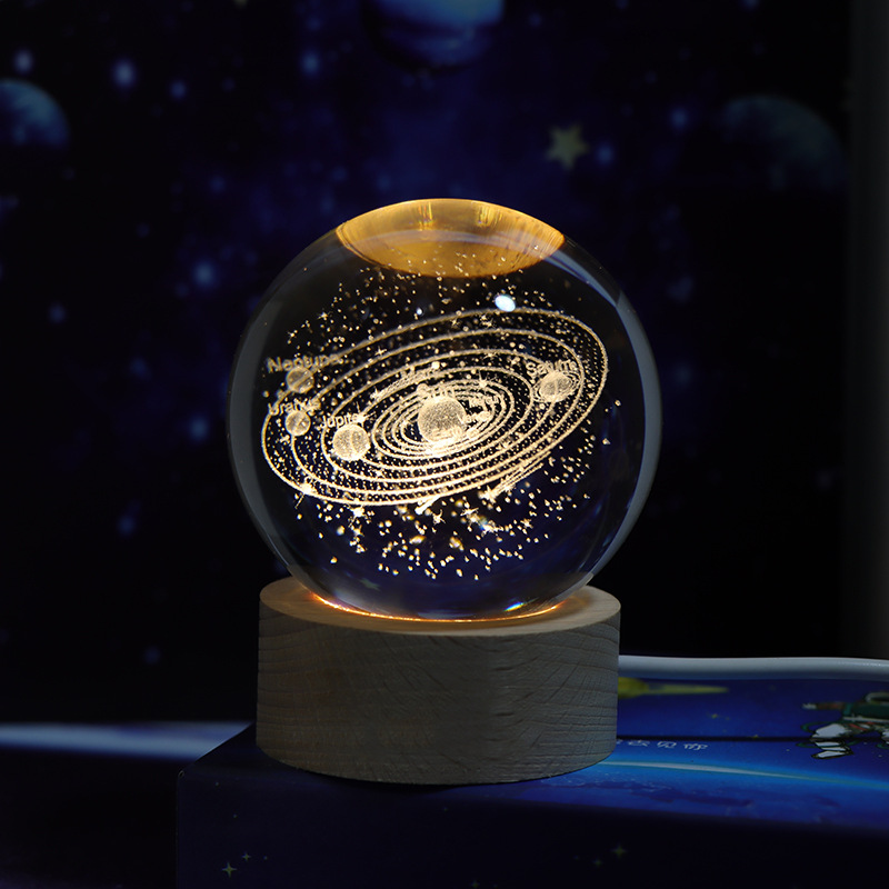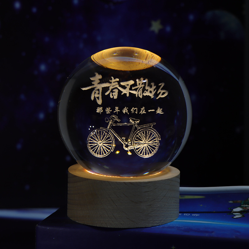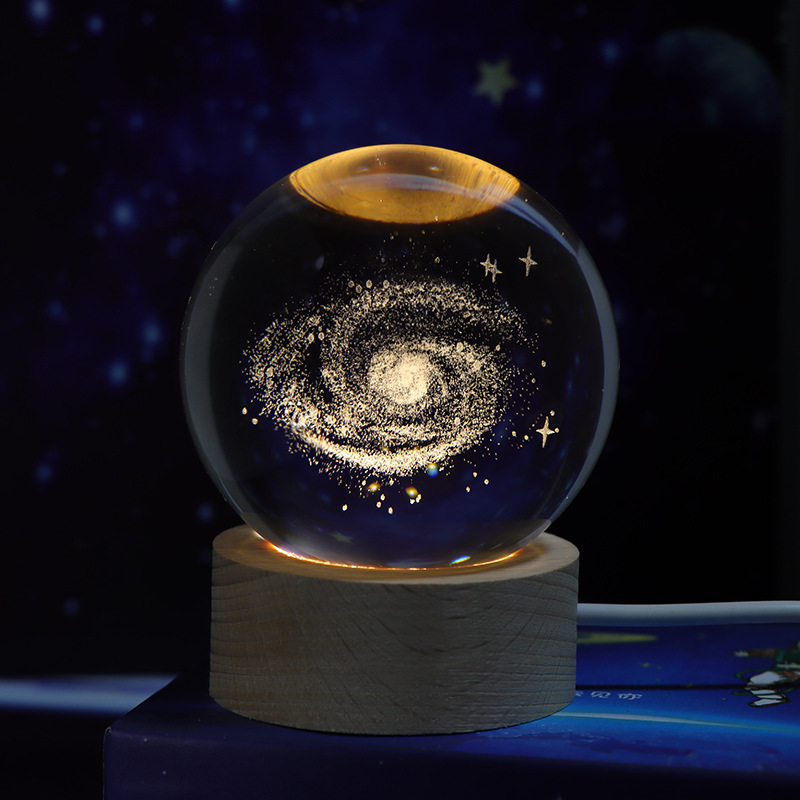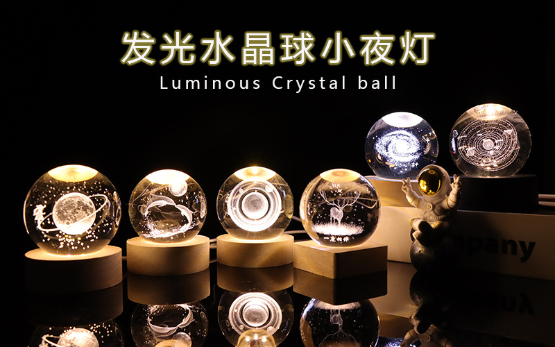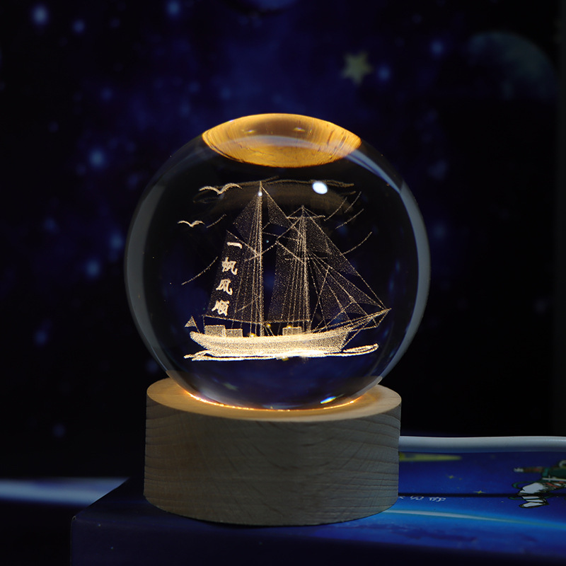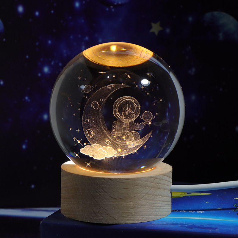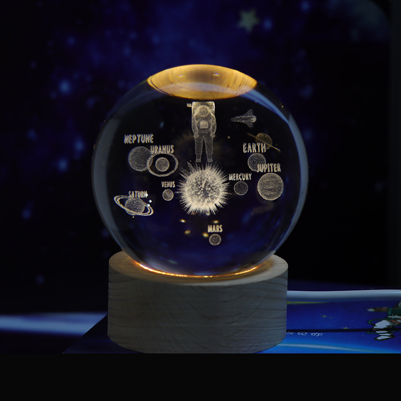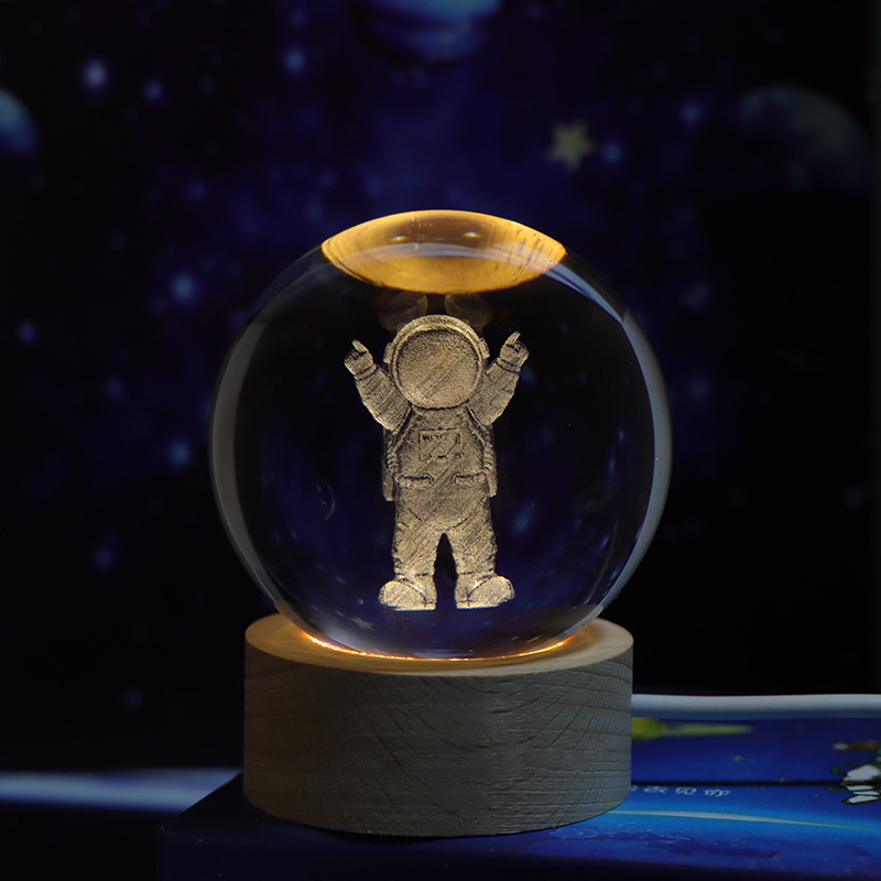 创意3D激光内雕发光水晶球小夜灯星空球太空漫步一帆风顺桌面摆件