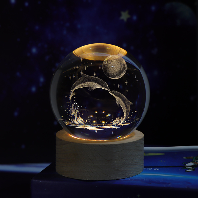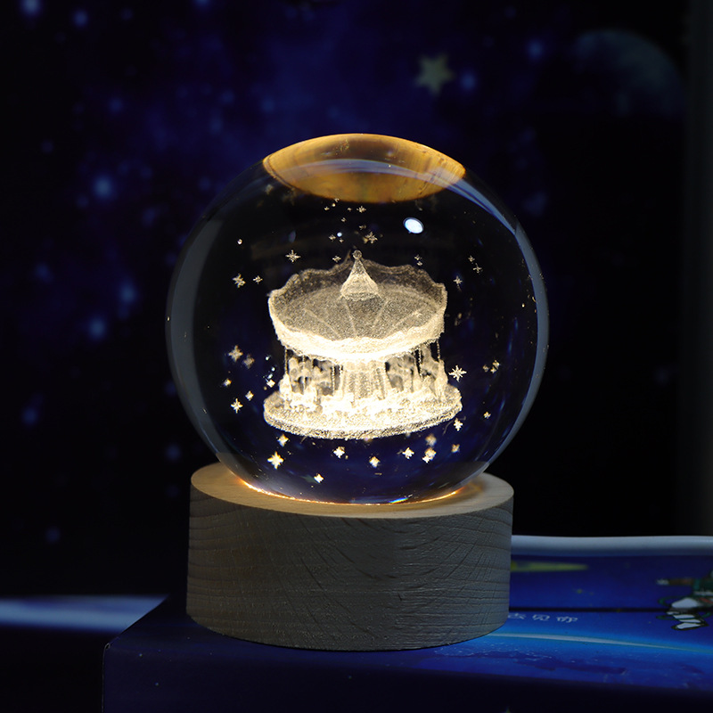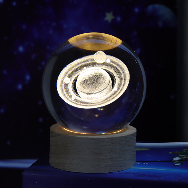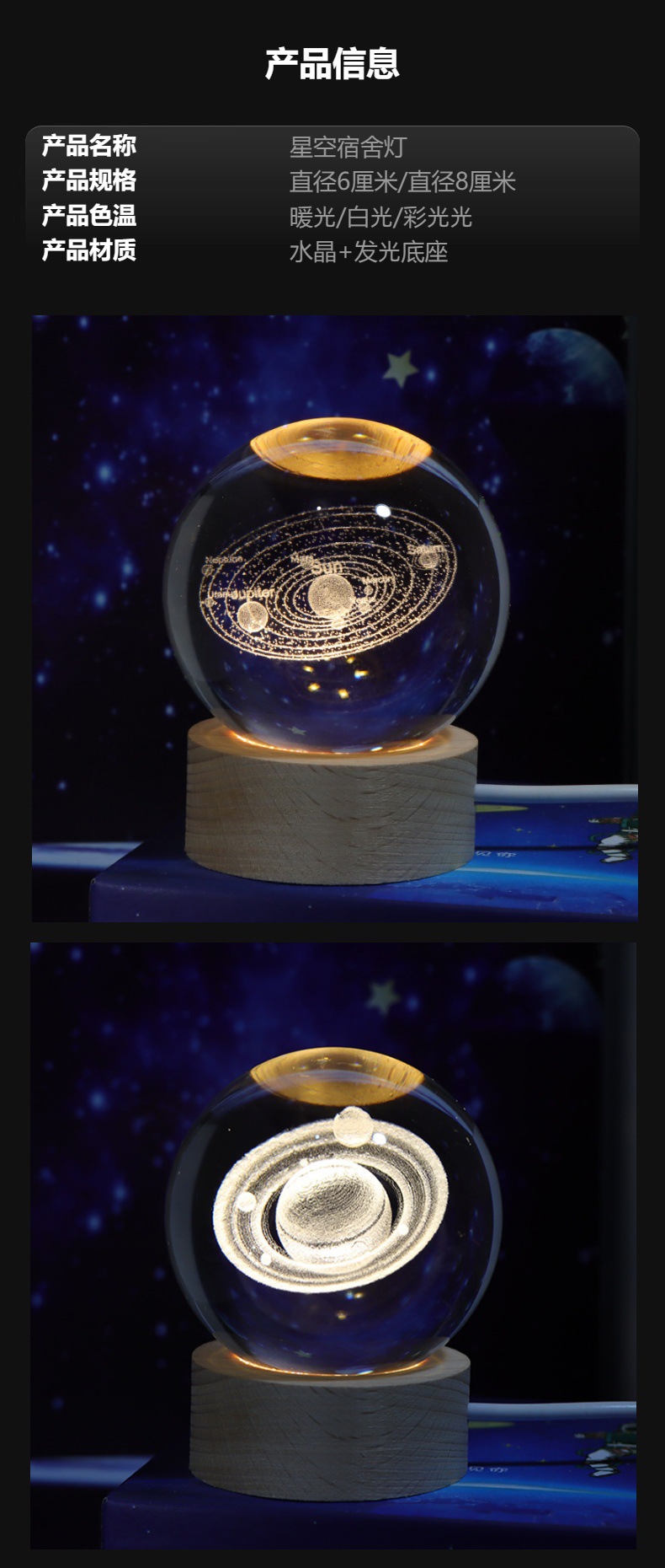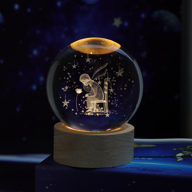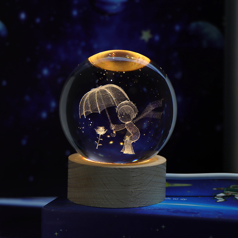 创意3D激光内雕发光水晶球小夜灯星空球太空漫步一帆风顺桌面摆件